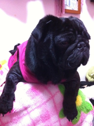 こんばんは。昨日はみなさまご無事だったでしょうか?横浜はお昼すぎまでなんてことなく、本当に暴風なんてくるのかな?という感じでしたが、夕方くらいからすごくなり夜は家が壊れるかと思うほどあおられてました。 ところで、今日はうちのぶさいく黒パグについて。ちょっと困ったことがありました。 ↓写真のとおり、はげております。パグは肌が弱い犬種のようですが、うちの黒パグはまだ2度目の春ですが毎年春になるとハゲだします。 特徴としてはあごからお腹にかけてがベトベトと油っぽくなっていてかゆがり毛が抜けていくといった感じです。あと背中にも1500円くらいのハゲ(500円玉3つ分)があり、ここはすごくフケが出ます。 先生いわく、お母さんのおっぱいを飲むときに親からうつったダニみたいなのがいるらしいです。 それは体の中に潜んでいて、ほかの犬や人にうつるダニではないそうなのでチワワや私はなんともないのですが、パグがかゆがってかわいそうです。 かわいいチワワに追い回されるハゲパグを見ていると、世の中って不公平と痛感します笑。。 せめてただのぶさいくパグに戻ってほしいと願います。 何かハゲに効くものやアドバイス等ありましたらなんでもいいので教えてもらえるとうれしいです。 なんせ全身真っ黒なものではげると一段とめだちます。 ランキングもあきらめずに頑張って更新していきます。これからもよろしくお願いしますvチワワ派はこちらをどうぞにほんブログ村パグ派はどうぞこちらへにほんブログ村
