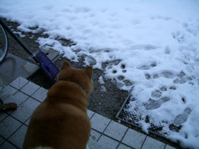 桃です。今日は、僕のうちもいっぱい、雪が積もっています。 犬だからと、庭に出されたのですが、庭に下りようかどうしようか、思案中。最近は、野良猫のみかんさんも来ません。どうしてるのかしら。 犬だから、やっぱ、雪の中、駆け回らないと駄目かなあ…。 あんまり気が進まないなあ。 もうちょっと、奥までいってみようかなあ。 段々、楽しいような気がしてきました。 ラッセル、ラッセル(^^♪ でも、やっぱ、雪の日は、室内の暖房の傍で、昼寝が、サイコーっすね。
