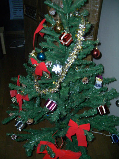 せっかくなので、クリスマスツリーを出してみました。ツリーを買った時は、毎年飾りを買い足そうかなあ、とか思っていたのですが、飾りが多いと、出すのもしまうのも面倒なので、結局、買い足しておりません。 昔は、ドイツ製とかだったので、高かったけど、最近は、オーナメントも中国製とかで、随分と安くなりましたね。 でも、不思議なもので、安いと別にいらないのねえ。 あれってなんなんだろう。 愛犬の桃ちゃんにトナカイさんの格好とか、サンタの帽子とか被せて写真を撮りたかったのですが、却下されました。 これが、精一杯でしたわ。 寝起きのボーっとしてる時を狙って、正月は、もうちょっといいのを撮ろう。(誰も期待してないだろうけど。(^.^)) いい、クリスマスですか? 私は、吹雪で寒いよ~のクリスマスです。 でも、キリスト教徒じゃないからいいんだけどね。 こないだ、お寺さんと、日本人の宗教観の話をしていて、日本人って土着的に八百万の神様って、意識が元々あるので、仏陀もキリストもなんでもかんでも、その神様のひとつとして受け入れてしまうのですってね。 だから、その時節の神様を祀る意識なので、新年は、神社、葬式は、仏陀とかでなんの抵抗もないのだそうだ。 ふーん。と納得したのでした。