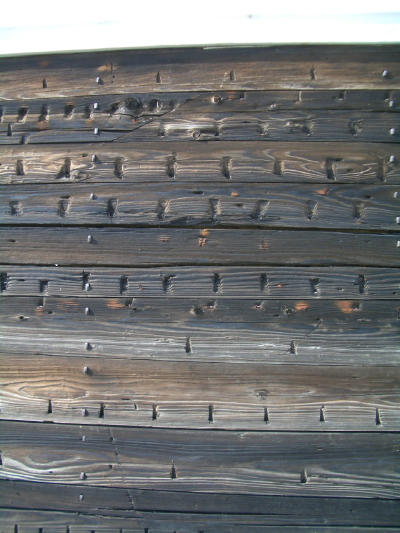 昨日は、すんごく寒かったですが、今日はちょっとマシでお日様も出ている滋賀県東北部です。冬には貴重なお日様でございます。 神戸にいるときは、冬の晴天なんて当たり前だと思っておりました。失って初めてわかる人間の愚かさよ、なんちゃってな。 昨日は、おかあさんと一緒(大人なのにこういうのを見てる私。)の料理番組が、偶然わが町でした。 でも、合併したばかりなので、全然ぴんとこないなあ。 見ててもさっぱり、どこか見当もつきませんでした。 舟板塀の前でやってるのだけは、わかったけど。 新聞に入っている広告みても、全然さっぱり、どこにあるのかわからないんだよね、下の字しか書いてないから。 なんせ、合併した範囲が田舎なので、めちゃ広い。三重県まで続いております。当然、ほとんど山林であります。 道路標識なんて、四方が、同じ市の表示なので、全然表示のしようがないらしいし。 方向音痴なので迷子になりまくっています(ーー;) さて、これが、舟板塀(ふないたべい)です。 アップすぎて、かえってわからないかなあ。これ、琵琶湖で使っていた船の船底なんですね。 へこんでいるのは、釘のあとなんだって。 これが、その舟板を使った蔵のアップです。 右端のほうに、板がめくれて、白くなっているところが、丁度、船の舳先の形に▲になっているのが、わかります? 船に使う木は、水に強くて腐りにくいので、リサイクルでもう一回塀に使ったのだそうです。 昔は、なんでもトコトンもったいないと思って使ったのねえ。 手間賃が安くて、手仕事だから、板きりだしたり、山から運んだりが大変だったんでしょうね。トラックとかないもんね~。 この辺は、山がないから、材木が貴重だったのかなあ。 昔は、お風呂沸かす薪がなかったから、藁でお風呂を焚いていて、お風呂も中々入れないような土地柄だったらしいです(ーー;) 戦前に嫁にこなくてよかったわ。 ああ、散歩に行きたい犬が、暴れている!(^^)! そういえば、子供見守り隊とかで、出来るだけ、2時半過ぎに犬の散歩に行きましょう、って小学校から、申し送りがあったの。 そんな中途半端な時間に散歩にいったら、私は、一日3回犬の散歩にいくはめになるから、いやだよ~と思ったのであった。 犬のお散歩紐がついに壊れてしまいました。 買わないといけないわ。 たまには、こういうブランドものもいいかも。 エルメス 犬用リードトゴ/オレンジグッチ リード ファブリック&レザーブラック&パープルでも、こういう高級品って、たいてい超小型犬用。うちのは、これを愛用しています。便利です。