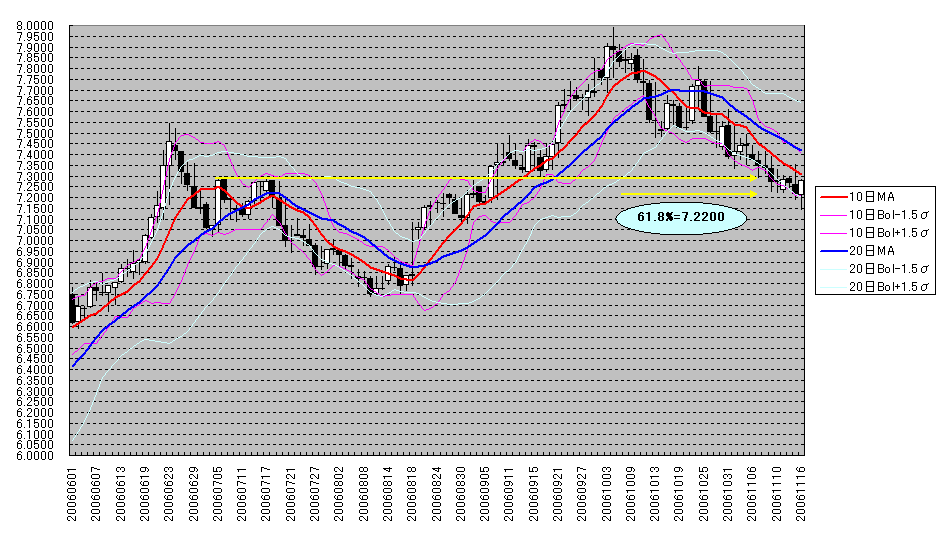日足チャート   10日MA Bol1.5、20日MA Bol1.5入り