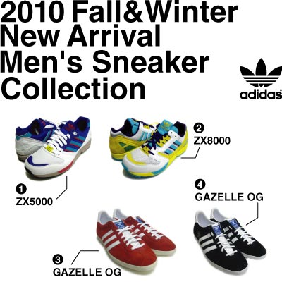 こんにちは!スガタ氏です!本日はマイスター神戸楽天ショップの新作情報をお届けしたいと思います!■□■Men's Sneaker■□■2010年秋冬の新作が入荷いたしました。「ZX」シリーズに新作カラーが登場しました!ZX8000¥14700ZX5000¥14700また「GAZELLE OG」にも新作カラーが登場しました!GAZELLE OG¥12600【ブラック】GAZELLE OG¥12600【レッド】新作バッグやレディースの新作もたくさん入荷していますのでそちらもぜひ、御覧ください!2010 FW 新作BAG ↓こちらqからどうぞ2010 FW レディース新作↓こちらからどうぞ今後も続々と入荷する予定ですので是非チェックしてみてください!ではさようなら─────────────────────────────────────