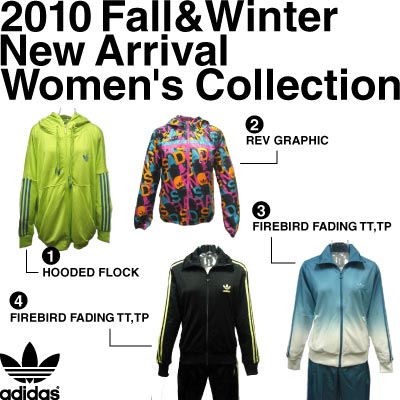 みなさん今晩は!スガタ氏です!女性の皆さんお待たせしました!もうそろそろTシャツも飽きて秋物を買いたくなってきたんじゃないでしょうか?というわけでレディースアパレルの新作が入荷いたしました!!!1.HOODED FLOCK¥13650アディダスのオリジナルモデルに基づいたメイクアップTTパーソナライズドは、身長体重お構いなしのオーバーフィッティングが際立ったデザインでバットウィングスタイルの袖/襟元にタイコードをあしらっていて、取り外すことのできるメイクアップバッグには小物類をしまい込んでおけます。2.REV GRAPHIC¥11550気分次第でスタイルを変えられるリバーシブルのWBジャケット。一方は全面カラフルなadidasのプリントとなり、もう一方は単色で胸部分にストライプをデザイン。飾りをあしらったフードとトレフォイルロゴの刺繍は、どちらのスタイルにも共通しています。3.FIREBIRD FADING TT,TP TT¥9345 TP¥8295不動の人気を誇る80年代の名作が、ファイヤーバード・フェイディングTTとして堂々の復活。その見栄えもさることながら、着回しのきく便利な一着に仕上がっています。ここではシーズン限定のホットな新色を、実に繊細で淡い色調であしらっています。4.FIREBIRD TT,TP TT¥11130 TP¥9765ファイヤーバードTTはクラシックな襟元を備えていて、袖にはコントラストの効いたスリーストライプ。フロントのジップタブはトレフォイル型となり、背中には大きなトレフォイルをあしらっています。80年代独特のスポーティーなデザインから抜け出てきたようなファイヤーバードTPは、ゆったりとしたストレートラインでスタイルを引き立たせてくれます。光沢のあるポリエステルを使用し、内側を毛羽立たせている。こんな感じでまだまだ入荷しておりますのでこちらからチェックしてみて下さい!どうぞ!新作チェックはこちらから↓いらっしゃいませー!