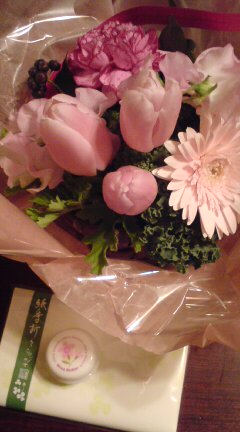 思いがけず、Birthdayプレゼントを頂いてしまいました。3月3日はひなまつりですが、実は、私の誕生日でもあります~節約生活続行中の身ゆえ、特に何もしなかったら、思いがけず。。。画像の下に写っているのは、シアバターと懐紙。懐紙は、淡いグリーンのクローバーの模様です。あまりに素敵過ぎて、使えないかも。。。シアバターは、桜の香りのクリームで、リップに使ったりするそうですほんのりとした香りに、癒されます~私の好みを良くご存じの、Nくん母から頂きました。どうもありがと~そして、ピンクのアレンジメントは、ナツカシイ友達からのものかつて、予備校に通っていた時に、仲良しだったN子からですカードが付いていて、アドレスを載せてくれていたので、メールすることが出来ました何年ぶりかなあ。。。何とか、都合をつけて会いたいねと、話しましたN子~、ホントにありがと~このところ、色々と、思いがけずに良い事があるような~節約生活の私に、神様からのご褒美な~んてねへへへっそうそう、誕生日、だんだん嬉しくなくなるけど、今回は、まあ、記念的な。。。なんたって、50周年ですから。。。きゃ~、言っちゃった~いやはや、自分でも信じられないですよ~人生、半分以上来ちゃったのかしら。。。でもね、まだまだ、これからだ~いあと、10年後くらいに、「年齢不詳の人」と、言われていたいなあにほんブログ村にほんブログ村にほんブログ村