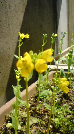 やっと お日様が…晴れたり曇ったりの微妙な天気でしたが、晴れ間が出ると、ホッとしますね玄関先の、ミニチンゲン菜の収穫もほぼ終わり、(ろくに肥料もやらなかったので、ホントにミニでした)そのままにしていたら、背が伸びて、花が咲きましたやはり、菜っ葉の花は、黄色なの小さい菜の花畑が、玄関先で揺れています今日の午前中は、Sさん宅で、調理とお掃除でした。やはり、おじいちゃんの一人暮らしは、栄養が偏るのが心配。チーフも助言してくれて、今日は、竹輪とシイタケの煮物と、ほうれんそうの卵あえを、とのこと。火曜日に、別のヘルパーさんが、材料を買っておいてくれたので、すぐに、作り始められました。ほうれんそうは、量が多いので、半分を卵あえに。もう半分は、おひたしにしました。一人分って、難しいですね先週は、肉じゃがを作ったのですが、ついつい量が多くなってしまい、今日、どうでしたかと聞いたら、やはり、多かったそうです今日はかなり控えめにしたつもりなんですがどうかなあ。。。Sさん、火曜日がお誕生日だったとのこと「おいくつになられたんですか」と、お聞きしたところ、「77だったかなあ」とのこと。「ラッキーセブンが二つもホントにおめでたいですねじゃあ、次は、末広がりの88まで、お元気でいなくちゃね~」と、言ったら、「いやあいやあ、そんなに長生き出来ないよ~」と言っていましたが…(^_^;)無理をせず、長生きして欲しいと、Sさんの笑顔を見ると、思わずにはいられませんにほんブログ村にほんブログ村にほんブログ村