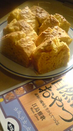 久々に 焼きましたにんじんバターケーキ時々、思い出しては愛用している、「自然派おやつ」 江島雅歌 (農文協)この本に載っていますバター 40グラム三温糖 35グラム卵 1個小麦粉 100グラムベーキングパウダー 小さじ1/4にんじん 100グラムバニラオイル 1滴にんじんをすりおろしておきます。ボウルにバターを入れて、泡だて器で混ぜ、三温糖、卵を加えていく。バニラオイル、にんじん、小麦粉の順にさっくり合わせる。この後、マフィン型に入れて、180度のオーブンで20分焼くのですが、今日は、長方形のケーキ型で焼きました。分量も、2倍にしました。バニラオイルはないので、バニラエッセンスにしましたが、バニラオイルの方が香りが飛びにくいんだそうです。にんじんは、すりおろした後、水気をしぼると、書いてありますが、しぼらなくてもOKでしたそれから、バターと砂糖もちょっと多めに入れた方が、しっとり柔らかに焼きあがりますこの本は、「減糖・減バター 素材の風味を生かしてつくる」との副題が付いているので、砂糖もバターも控えめな量になっているんです。カジュ―ロは、ひとつ食べて「にんじん入ってない方が好き」と言っていましたが、チョロジは、焼き立てほやほやを2切れ、ペロリと平らげていましたじゃが芋クッキーとか、玉ねぎタルトとか、まだ試していないけど作ってみたいものが、たくさん載っているので、今年はいろいろ作ってみようかなにほんブログ村にほんブログ村にほんブログ村