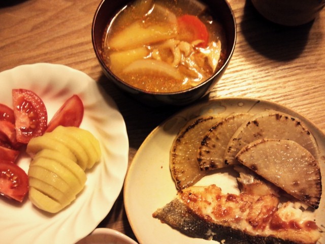 今日もヘルシー。って言うより質素かな(^_^;)タラと大根をごま油で焼いただけ。タラに塩味が付いていたので、焼いた後にトマト麹とレモンをかけました。大根は何もかけず。でも、大根の甘みとごま油のコクで思ったよりも美味しかったお汁は大根、長ネギ、ジャガイモ、にんじん、豚肉に、トッポギも入れてキムチ味に。チョロジはお代わりしてくれました。トマトとゴールドキウイをデザートに。やっぱり、質素ですね。でも、夕飯はこのくらいで良いと思います。チョロジも私もこれ以上太っちゃいかん、ので今日は久喜の「モラージュ菖蒲」に行って来ました。4月からチョロジが通う事業所Aがお店を出すと言う、ハートホットフェスを見て来ました。年に2回開催していて、次回は6月だそうです。6月はチョロジも参加になると思うので、今日は様子を見せておこうというわけです。まだ、どこまで分かっているのかは疑問ですが、職員の方に「4月から一緒にがんばろうね!」と言われ、取りあえずうんうんと頷いていたチョロジです(~_~;)今日のフェスは他にも福祉事業所がたくさん参加していて、いろいろ買ってしまいました。おせんべい、クッキー、可愛いポーチ、ビーズストラップ、などなど。一昔前は、障害者が作っているから…と宣伝して買ってもらう、みたいなムードがありましたが、最近のこういった催しも、変わって来てると思います。障害者が作るもの、という以前にそのものが美味しかったり、可愛い、素敵なものであることを、作る側も意識しています。事業所Aのおせんべいもとっても美味しくて、今日も自分の分とお友達に頼まれた分も買いました。6月は、お友達にもっと宣伝して、チョロジがお店に出る日に買ってもらいたいなあ。もちろん、母も買いに行きますよ。モラージュ菖蒲、初めて行ったのですが、思ったよりも広いショッピングモールでした。車で行くのが便利でしょうが、久喜駅からバスが出ているので利用しました。慣れない場所にちょっと疲れて、帰りのバスでは2人で寝てしまいました。パスモが使えなくて、現金で前払いのバスって久々でした^m^にほんブログ村にほんブログ村にほんブログ村