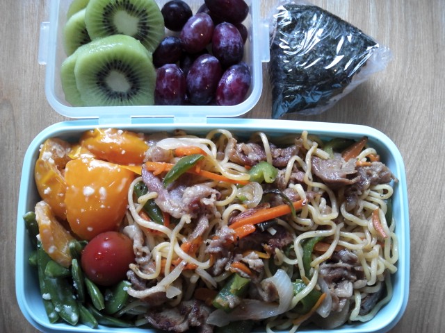 今日のチョロジのお弁当は、またしても焼きそば。先日、美味しくなかったと言われたので、もう止めようと思っていましたが、買い物に行った時に焼きそばの袋を手に、もう一度チョロジに質問。「また、焼きそばのお弁当作ろうか?」すると、うんうんと頷きながら、焼きそばの袋をスーパーのかごに入れたチョロジです。なんだ、嫌いじゃなかったのね。「焼きそば美味しかった?美味しくなかった?」と、今度は「美味しい」のサイン(ほっぺを軽くたたく)をしながら、聞いてみたら美味しいのサインをしてくれました。「美味しくない」という単語がよく分かっていなかった?当然分かってると思う言葉が、実は分かってなかったと言うこと、時々あるのですよねえ。。。(>_