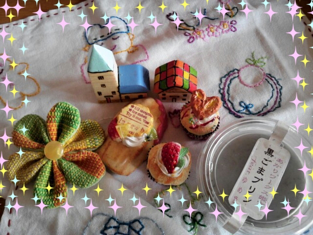 金~日曜日に久喜のモラージュで開催されたホットハートフェス。日曜日に行って来ました。日曜日の午後だったからか、駐車場がいっぱいでした。私は久喜駅からバスで行ったから良かったけど、車の方は空いてる所を見つけるのに、大変だったんじゃないかな。吹き抜けの1階スペースでやっていたので、ちょっと2階からチョロジの様子を見学。みんなでおそろいのポロシャツを着て、おせんべい販売をしていました。おせんべいを渡されると、白いレジ袋に入れる担当。たぶんそれしか出来ないんだけどね(^_^;)たまにお客様からお代を渡されると、慌てて隣にいる同僚かスタッフさんに渡してました。お金のやり取りは自分でも苦手と分かってるので、「これは僕の仕事じゃない」と思ってるみたい。ニコニコして時々おじぎしたり(お客様がいてもいなくても)、キョロキョロしたり、腕を動かしたりと、まったくマイペースな様子。まあ、ご迷惑はかけていないようだったので、まずまずといったところでしょうか。お客様がいない時に降りて行って、おせんべいと大福、ごまプリン、コーヒーゼリーを購入。今回は大福も仕入れをいつもより増やしたそうです。大好きなカスタードあんの大福が買えてラッキー!!ごまプリンとコーヒーゼリーは新作だそうです。やはり障害者が働く喫茶店に依頼して、作ってもらったそうです。買った後でカバンに入れて持ち歩いていたせいで、帰宅してみたらゼリーの生クリームがぐちゃぐちゃに冷蔵庫で冷やしてから食べました。見た目は悲惨でしたが、お味はなかなか。てことで、画像にゼリーはありません。ごまプリン以外の小物は他のお店で購入。みんな障害者が通う事業所の手作り品です。刺し子の布巾はいろんな図柄があって迷いました。木工の小さなおうちもデザインと色がたくさん。焼き菓子は本物そっくりですが、マグネットです。布のお花はブローチ。他にも革製品を並べてるお店や、パン、クッキー、味噌など、いろんなものがありました。木工のお店ではおままごともあって、小さな男の子が気に入って遊んでいました。カジューロやチョロジが小さい時だったら、やっぱりかぶりついてただろうなあ。時々コンサートも行われていて、にぎやかでした。チョロジがお仕事していた時には、三味線、お琴とフラダンスの方のライブがありました。これも小さい時だったら、チョロジは耳をふさいでいたかもしれませんが、(大きい音や、苦手な音には耳をふさぎます)今回は我関せずで、普通にしていられて良かった(ホッ)3日間のうち、金曜日は全員出勤して、たぶん販売には交代で2時間くらいずつ行ったのだと思います。土日は22人を6班に分けて、土曜に3班、日曜日に3班の出勤。チョロジは日曜日の11:30~15:00が、お仕事だったわけです。色々な場所に行かせてもらえて、実際に販売の経験をさせてもらえているのは、チョロジにとっては良い経験になってると思います。お仕事を始めてから3か月め。取りあえずチョロジ、なんとか馴染んでいます。にほんブログ村にほんブログ村にほんブログ村