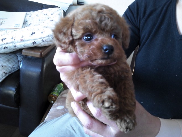 あっと言う間に12月も半分終わろうとしてます。寒さもいよいよ冬らしくなって来ました。年賀状の受け付け開始、とか聞くと、にわかに気ぜわしくなってまいりますね。このところ、ちょこちょこと片付け、掃除をしています。先週ぶじに、粗大ゴミを出しました。ゴミと呼ぶには少々気が引けるような、まだ使えるものばかりではありましたが。学習机、イス、古い布団、重くて動かしにくい脚立、壊れてあちこち修理した座卓、など。まとめて、便利屋さんに持って行ってもらいました。学習机はチョロジのを2階からおろすのに、ひと苦労したのは前回綴りましたが、次の日、カジューロの机を降ろすのは、さらに苦心惨憺でした。同じ大きさと思っていたら、奥行きがほんのちょっと長くて、その微妙な差ゆえに、階段の踊り場で引っ掛かり。。。再度2階まで戻って、机の向きを変えて、チョロジが下側になってくれたおかげで、無事に1階に降ろせました。後で考えたら、便利屋さんに頼めば、2階から降ろすのもやってくれたんでしょうね、たぶん。しかし、出来るだけ準備万端にしないと、気が済まない貧乏性の私です(-_-;)便利屋さんに来てもらった時は、玄関の近くにすべてを集めておいたので、便利屋さんがひとつ持って行くと、次を私が玄関へ移動。運び出しは、ものの5分で終わりました。まだ使えるからってしまっておいて、結局10年使わなければ、たぶんもう使わないんですよね。そう思って、思い切りよく片付けました。おかげで、かなりスッキリ。押入れもだいぶ空いたので、春になったら加湿器をしまえます。そして、家具を移動したり、フローリングにカーペットを敷いたり、模様替えも並行してやっているところ。じつは、それには訳があります。先日、天使に会いに行ってきたんです。それは茶色い巻き毛の小さい男の子。トイプードルくんです。もともとは、息子たちが小さい時に、犬を飼いたいと思っていたのですが、TO-CHANが生きものを飼うのは反対でした。犬は無理でもせめてカメなら、と提案した時でさえも、カメは菌を持ってるから子どもに良くないと言われ(>_