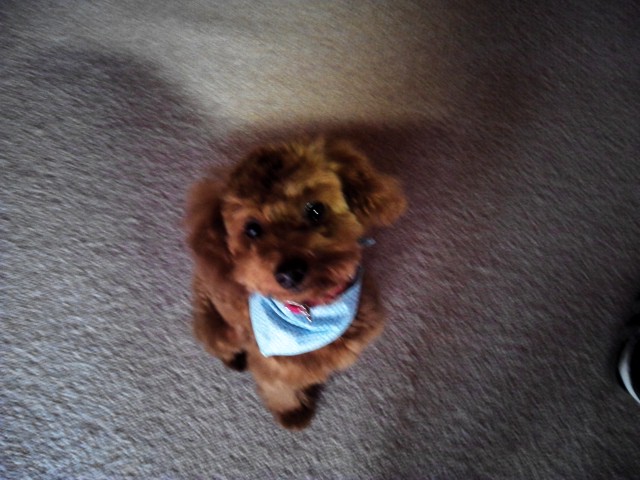 ようやく三回目のワクチン接種が済んで、二週間。トリミングに行けるぞ~!!と、さっそく予約。本日、北風吹きすさぶ中、自転車の前かごにルウを入れて、とばして10分のイオンまで行って来ました。12月に家に来てから3か月、ちょこっとは自分でもバリカンとハサミでカットしてはみたものの、背中のあたりしか切れず、ほぼ伸ばしっぱなしでした。今朝までは、もこもこのほぼタヌキ。10時40分に頼んで、お迎えは1時40分。初めて預けること3時間。。。大丈夫か、うちの子。なんか息子たちを初めて保育園に預けた時を思い出しました。11時半頃に、そ~っと見に行く。遠くから、大きなガラス窓の向こうをのぞけば、天井から下がっているバンドで体を固定されて、カット台の上でおとなしくカットされているではないか。さすがプロの手は、安心感があるのね。せっかくの自由時間なんだから、ゆっくりショッピングすればと、思いつつも落ち着かず。最後の1時間はペットサロンの隣にある書店で、「犬に聞いてみたいこと」(だったかな?)という本を、書店の中のソファーに座って読んでいました。買おうかと思いながらも、ほとんどそこで読んでしまった(^_^;)お迎えに行ったら、見違えるようなルウちゃんが!!君、やっぱりプードルだったんだね!って感じ。デディベアカットにしてもらい、ほっそりスマートに。水色のバンダナまでしてもらって、無事帰宅しました。おやつを食べて元気に遊びまわっていましたが、やっぱり緊張して疲れたらしく、私がこたつで昼食を食べてる間に、お膝の上に来て、お昼寝していました。私の昼ご飯を横取りしたくて、くんくんテーブルにお鼻を乗せていましたが、だめっ!!と何度も言われてあきらめたと思ったら、すぐに寝ていた~^m^またしてもボケボケの写真ですが。。。夜、台所に連れて行ってゲートを置いたら、リビングで洗濯たたみをしてるチョロジの方に行きたくて、ちょっとの隙間から出ようとしているルウ。頭が出たので、もうちょっとですり抜けそう(・。・;身体も柔らかいんですね~(@_@;)にほんブログ村にほんブログ村にほんブログ村