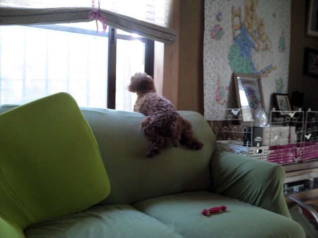 朝晩はまだ、涼しいので快適ですが、昼間の暑さは初夏のそれですね。昨日の夕方、鉢植えにお水をあげたので、今日も夕方に水やりをと思っていたら、2時頃にパンジーがしおれてうなだれていました。あわててホースを持ってきて、ジャバジャバと。出掛けて2時間後に帰宅した時は、すっかり元気になっていました。もう、真夏と同じで朝晩、水やりしないとでしょうか。お花も生き物だから、手をかけてあげないとですね(^^ゞ珍しく、土日とも予定のない週末でした。5月に入ってから、毎日の送迎で少々疲れ気味。昨日の午後は、3時間ほどお昼寝してしまいました。チョロジは部屋で遊んでいましたが、途中からやはりお昼寝していた様子。ルウも、私が寝てしまうとそのうち一緒に寝ています。私の足の上で頭が逆さになって寝てました。今日はそうならないように?ちょっと朝寝坊(#^.^#)久々に、柏の葉キャンパスのららぽーとに、チョロジと行って来ました。私はちょこっとウインドウショッピング。チョロジは、ダイソーでいろいろ買っていました。相変わらずの文房具マニア。封筒、折り紙、色画用紙、ガムテープ、両面テープ、シール、などなど。何をどう使っているのか、詳しくは分かりませんが、部屋でがさごそやっているので、まあいいかと。。。^_^;夕方、チョロジが紙に「ジュース」「おふ」と書いて、見せに来たので「買いたいの?」と聞くとうんうん。さっき柏の葉に行った時は、忘れていたらしく、あとで近所のドラッグストアに買いに行くことに。その前にルウちゃんのお散歩に行ってくるね。と言った後で「チョロジも行く?」と聞いてみたら、行く!!とばかりに靴下を履き始めたので、「お買い物は後だよ。ルウちゃんのお散歩から一度帰って来て、それからお買い物だよ。お散歩行くの?」と、思わず確認してしまいました。なんたって、チョロジがルウの散歩に一緒に行くと言ったのは、これが初めてのことでして。でも、やっぱり行くと言うので、行きました!!すごいぞ、チョロジ!!また、ひと山越えられたね~(*^^)vびっくりしてたのはルウの方で、外に出てもそわそわとチョロジの方ばかり見ています。チョロジの横に並んでみたり、ちょっと離れてみたりと、しばらく落ち着かないルウでしたが、お散歩の後半は落ち着いて、いつものように歩いていました。ルウのお散歩と言えば、今までほとんど外でトイレをしませんでした。お家でするものと思っているのかもと思っていましたが、おとといから川沿いの遊歩道に出ると、草のはえてるそばで、ウ○チをするようになりました。なんだか、やっといっぱしの犬らしくなったような。お散歩も板について来たと言うことかな?お部屋では、お気に入りの場所がここです。道路に面した窓から、外を眺めるルウ。お尻が可愛くて、つい登っちゃダメと言いそびれます。シャッターのパシャって音に振り向いたルウ。哀愁漂います。この後、飛び降りて私のスマホに飛びついてきます。私がくしゃみをした時も、「なんでおっきな声でびっくりさせるのさあ!」とでも言いたげに、前足で人の顔をひっかいてきます(*_*;甘噛みもまだがしがしするので、生傷たえません。。。私の手首も、テーブルの脚も。カーペットの端っこもかじられてぼろぼろになり、先日、端を切り取って、チクチクと縫いました。仕事が格段に増えていますが、それでも余りある可愛さと存在感。「お前、可愛くてトクだね」というのが、私のルウに対する口癖となっております。。。^m^にほんブログ村にほんブログ村にほんブログ村