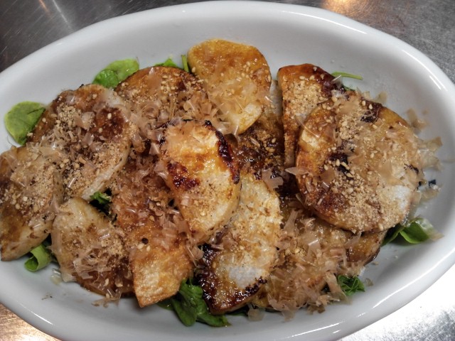 急に秋めいた気候に、心身ともにふやけております。猛暑の間、頑張っていた体がガクッと脱力。何だかだるかったり、首こりと頭痛も。夜、クーラーを付けずに寝られるなんて、しばらく忘れていた幸せです。しかし、それだけにまた、朝起きるのがツライ。お布団かけて、もうちょっと寝ていたいよ~(^_^;)ということで、このところギリギリに起きるので、お弁当作りが慌ただしいことこの上なく。時計をにらみつつ、バタバタとやっておりまする(*_*;さて、今日の夕食はクックパッドの人気メニュー、「長いものステーキ」を作ってみました。皮ごと洗って輪切りにして、フライパンで焼くだけ。最後に醤油を回しいれて、おかか、ごまをかけて終了。クックパッドではマヨネーズもかけるとありましたが、あっさりめにしたかったので、マヨは省略。醤油も味ぽんに替えました。長いもの下にはルッコラを敷いて、一緒に食べました。長いもの皮って、食べられないものだと思っていたので、これは目からうろこでした。焼くとぜんぜん皮は気になりませんでした。長いもは生でも食べられるものだから、ちょっと焼き目が付いてしゃきしゃき感が残るのが、焼き加減のポイントらしいです。簡単で美味しいですよ。食欲のない時にもお勧めです(*^_^*)にほんブログ村にほんブログ村にほんブログ村