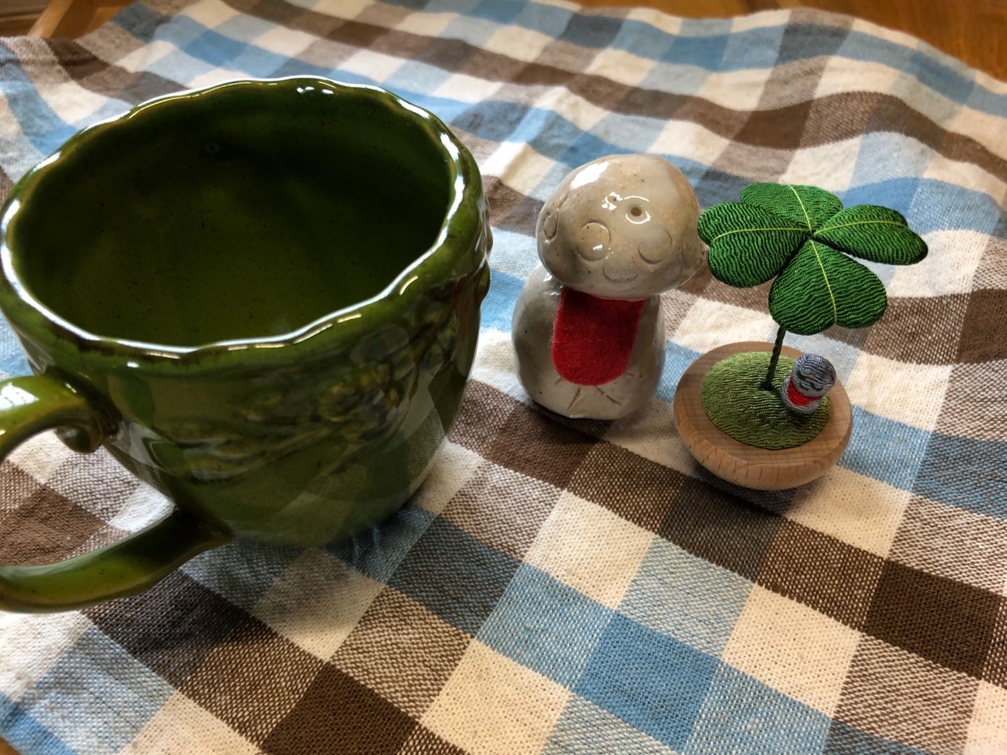 台風と秋雨前線のせいで雨が続きました。 台風だから、蒸し暑くなるかと思っていたら、急に寒くなって、コナツの体調が。。。 カジューロのお膝の間にちょこんとはさまっていたコナツが、小刻みに震えていて、慌ててお洋服を着せました。 急に気温が下がったので、体温調節がうまく出来ずに低体温気味になったのだと思います。 最初は薄手のシャツを着せたのですが、震えは止まったものの、今度は自分のベッドに入ったきり出てこなくてなってしまい。 まだ寒いんだと思い、セーターを着せましたがまだ、動きが鈍い。 思い切って冬用のモコモコのお洋服にしたら、じきにベッドから出て来て、動き回るように。 はーっ、良かったぁ。 それで、雨が降り続いてる間はモコモコ服を着せ続けました。床暖房も夜はつけて、寒くないように調整。もう寒いままかなぁ。。。と思っていましたが。 昨日、今日はなんだか蒸し暑く感じる曇り空。たぶん、湿度が高いからですかね、わたしは汗が出る程。 コナツも、もとの裸族に戻りました(^◇^;) また寒くなった時に、気を付けないとね。 雨で寒かった間は、わたしも咳やら頭痛やらで、風邪気味なのか喘息のせいなのか、気圧のせいなのか分からない状態でした。喘息のお薬も追加してもらい、頭痛薬も飲んだり、グダグダでした。 昨日あたりから、ようやく咳も止まって来て、頭痛も治って来ました。やはり、気圧がいちばんのカギかも知れません。 穏やかなお天気の有り難さよ)^o^( さて先日、大好きな雑貨のお店で購入したマグカップと置き物。 モスグリーンのマグカップは一目惚れ。ホントはおそろのお皿もあったんだけど見つけた時は買わずに帰り、数日後にやっぱり欲しいなと買いに行ったら、お皿は売れてしまっていました。縁がなかったんですね。 四葉のクローバーと小さなお地蔵様の置き物は、小さくて可愛いくて、これは見つけてすぐに購入。 真ん中のお地蔵様は、2年前くらいに障害者施設の方が作ったものを購入しました。なんだか味があって、ほのぼのするでしょ。お気に入りです。 キッチンに飾っているだけで、なんだか幸せな気持ちになります。 そして、またまた作りましたよ。知育菓子。 カラフルアイスショップ。 指でこねたり、型にはめて形を作ったら、レンジでチンしてカップを作ります。 ホントのアイスみたいで可愛い。 このお皿は手のひらサイズです。だから、小さな小さなアイスたち。食べるのがもったいないくらい。でも、食べたけど(^-^; 甘すぎなくて、優しい甘さ。美味しいです。 作るのが楽しいから、なんだかすごく満足感が〜(^o^) まだまだ、新しいのに挑戦しますよ〜(≧∀≦) 高いところが好きなふたり。今日は5段重ねのベッドの上で、ご満悦なコナツ。別な時にはルウも乗っていました。 いつも下から見上げてばかりだから、高いところから見たいのかな。ふふふ(*^^*)