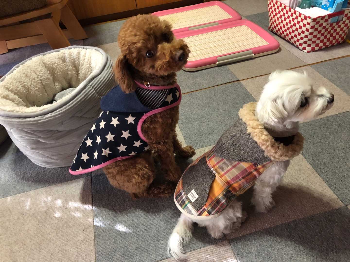 寒い寒いと言ってるうちに、時はどんどん過ぎて行きます。カレンダー見たら、もう1月半分過ぎてました(^◇^;) 急に北風が厳しくなってから、手指のあかぎれも急に増えて。。。10本の指のうち、6本の指先にバンドエイド。 治ってもまたすぐに、同じ場所がパックリ割れてしまう。。。痛いです。 ヒビエイドなる塗り薬もよく使うのですが、あとは液バン。パックリ開いた傷口に液体絆創膏を厚めに塗ると、とりあえずは水仕事してもいたくない。 ただ、はがれてくるので、こまめに上塗りしないとまた痛くなるのです。 冬の寒いのはガマン出来るけど、あかぎれだけは耐え難いです。 わたしの母もよくあかぎれが痛いと言っていたなぁ。あの頃はヒビエイドなんてなかったし、液バンもなかったと思う。母はどうしていたんだろう。 君たちは、裸足でお散歩していて足痛くならないのかしら? 毎日、歯磨きしたあとに身体もブラッシングして、肉球にもクリーム塗っていますよ。 コナツ、寒さに弱いのと、足汚れ予防にロンパース着せてお散歩行っています。ブルースリーみたいです( ^ω^ )