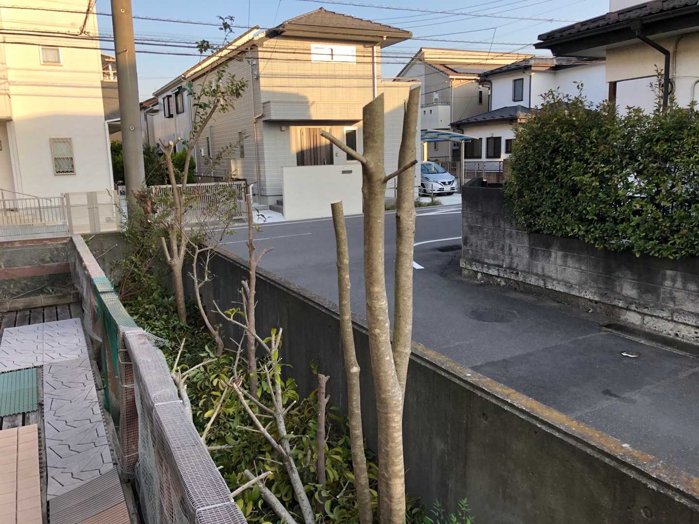 昨日も今日も、強風です。 一昨日まではなんだかものすごく暖かくて、半袖でもいけそうな陽気でしたが、昨日からまた真冬に逆戻り。 風が強いと、我が家の植木の葉っぱが落ちるし、飛ぶのです。とても、お掃除しきれません。 そして、また暖かくなって実がなったりしたら、鳥さん達の食べかすや糞で2階のベランダが被害を受けると予測できるので。。。 思い切って先日、枝を切りました。 afterしか写真を撮らなかった〜(^◇^;) beforeは、2階のベランダにゆうに枝が届くくらいに繁っていました。 ちょこっと切っても、またすぐに伸びるので、思い切り良く下の方から、剪定用のノコで切りました。 私でもさほど苦労せずに切れるくらいに、剪定用のノコは使いやすかった。買って正解でした(^^) しかし、ホントにバッサリ切ったので、めっちゃ日当たりが良すぎる〜(^^;; でも、もう散る葉っぱもないから、南側の側溝に葉がたまることもないと思っていたら。。。これが、どこからか飛んできてやっぱり葉っぱやらゴミやらが溜まるのです。 北側の自転車置いてる場所にも、飛んできた段ボールの切れ端や封筒など、色々たまります。 車の下にも、ゴミがたまってた〜(>_