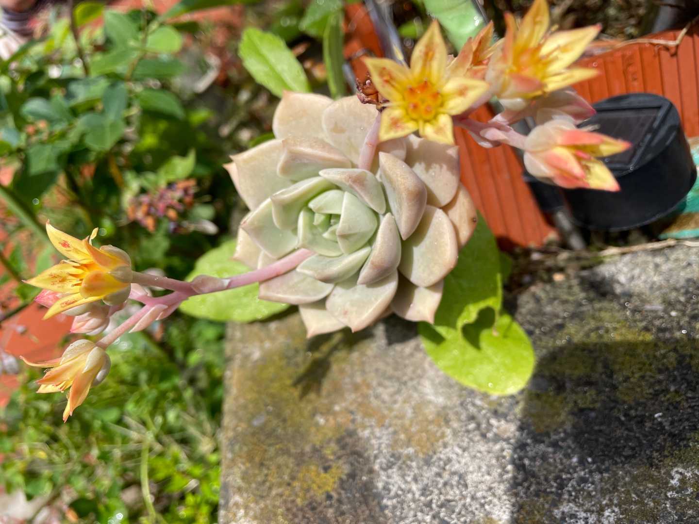 昨日はついに寝不足が重なり、眠くてお昼過ぎにお昼寝に突入。 リビングに毛布を敷いて、膝掛けを掛け布団がわりにして横になると、ルウが足の間に割り込んで来て、ちょこんとアゴを乗せて一緒にお昼寝。 なんと5時まで寝てしまいました。オマケに夢まで見てしまった。 もう30年も前に他界した母が、一人暮らししていて、一緒に住もうよという話をしていて。 そして、我が家にすごく広いお庭があって、そこに母の家を建てればいいよ、なんて言ってる。 母は、あまり喋らずに、でもなんとなく嬉しそうにしていたように思います。 広いお庭も、母の家も、母と暮らすのも、わたしの願望だったのかなぁと、目が覚めてから思いました。 数日前に、わんこ散歩で通りかかって、うわぁこの家お庭が広くて素敵〜と思ったのが頭に残っていたのかも。 母の存在は、やっぱりわたしにとってはいちばん大切な存在だったのかなと。 もちろん、今はカジューロとチョロジがいちばんに大切な存在なんだけど。。。でも、自分がいくつになろうとも、母は母で、かけがえのない人なのです。 30年前にお別れしてしまったけれど。今だにああ、母がいたら相談出来るのに、とか、こんな時母がいてくれたら、とか、これは母がいたら喜んでくれたろうなぁ、とか、思ってしまう時があるのですよね。 母が今元気でいたならば、きっとカジューロもチョロジも可愛がってくれたでしょう。ルウもコナツも可愛がってくれたと思う。 ないものねだりのわたしの願望が、夢になって吐き出されたのかな。 でも、大丈夫。今も、充分に幸せです。 さて、明日からカジューロもチョロジもお仕事です。お弁当作って送り出しますよ。 我が家の玄関先の多肉植物。 どんどんお花が咲きます♪ 咲き終わったら、どうすれば良いのかな。こんなに咲いてくれたの初めてです。 今年は良い年になるのかしら?そういうことにしておこう! だいじょうぶでしゅよ。みんな元気でいられるでしゅよ。(by コナツ)