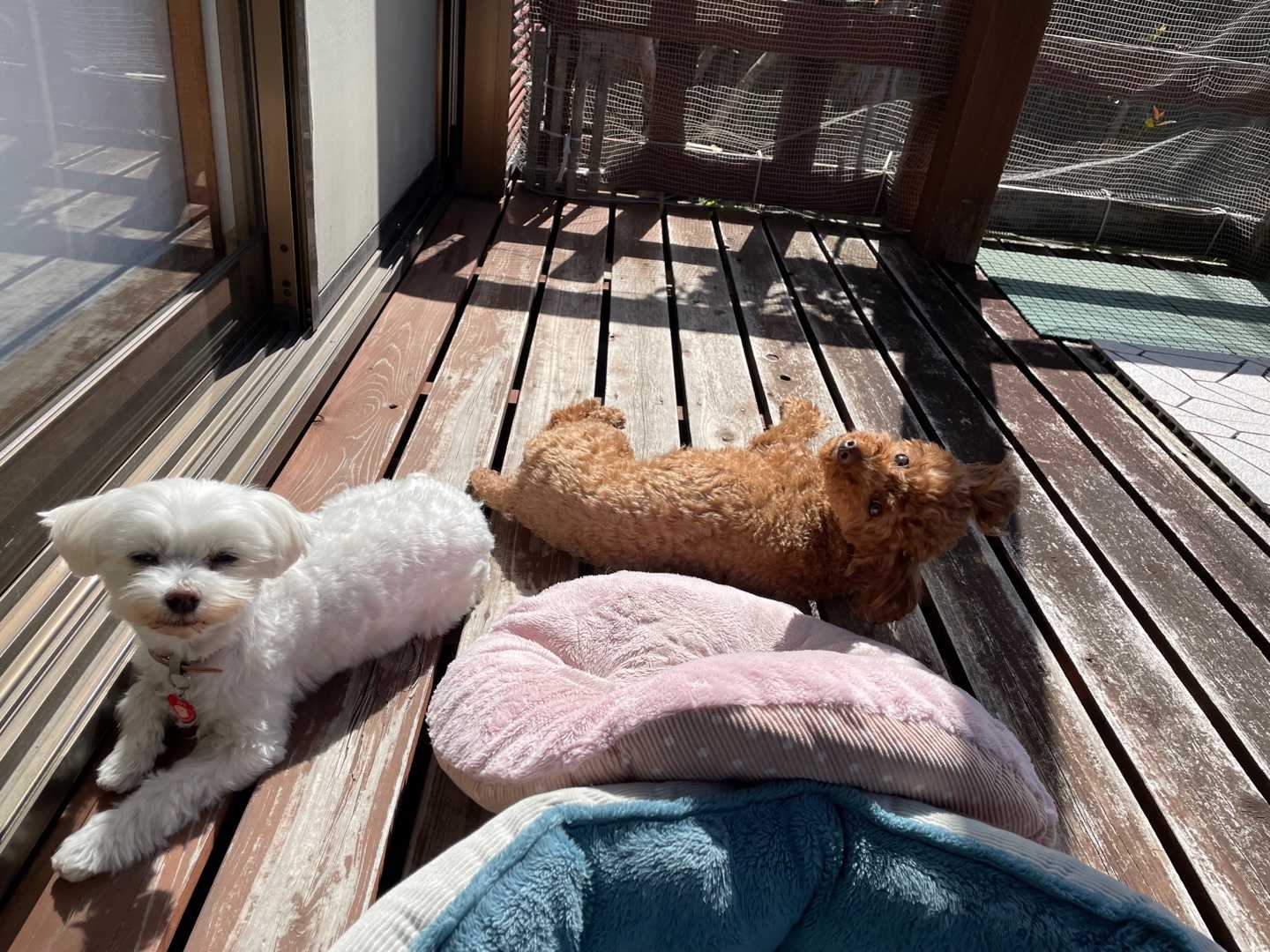 何をするでもないGWだったけれど、毎日チョロジと100円ショップ巡りして、夕食作りとで気疲れした感じでした。 カジューロとチョロジが小さい時の夏休みなんか、もっと大変だったはずなのにね。 やはり、歳には勝てないってことでしょうかね(~_~;) 昨日は、朝お弁当を作って、片付けて、洗濯干して、わんこ散歩に行き、ご飯を食べさせて。。。お昼前に撃沈。 3時まで寝てしまい、遅いお昼ご飯を食べたらもう夕方散歩の時間に。 やっぱり、ちゃんと早寝早起きして疲れは夜の間にきちんと取らないとダメですね。お昼寝しちゃうと、何も出来ずに1日が終わってしまいます。 なかなか早寝が出来なくて、でも最近は毎日カジューロがお弁当と朝食用のおにぎりを持って行くので、その分早く起きることになり、寝不足が蓄積して行きます。 なんとか生活のペースを立て直そうと、努力中です。 もとから早起きしてれば、なんてことないのにね。遅寝遅起きしていたからダメなのよね。 しかし、朝、玄関先に出ればお花が咲いていて、春っていいですね。 毎日お水をやるくらいで、あまり手をかけていないので、今日は少し肥料をあげました。 お野菜の苗もホームセンターに行くとたくさん出ていて、キュウリやミニトマトなんか植えたくなるのだけど、玄関先を整理しないと植える場所がない。 ウチの中も外も、片付けないとね。。。ふーっ。 おもちゃをかじりながらご機嫌なコナツと、いつもの定位置でくつろぐルウくん。 君たちは、マイペースですね。
