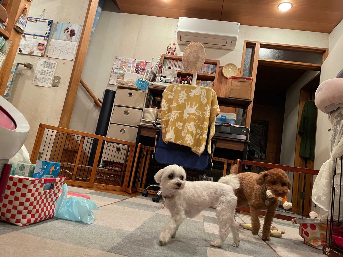 昨日の暑さは尋常ではなかった。 まだ、我が家はこたつ布団がそのままだし、リビングにはこたつの横に扇風機も置かれている。 今年、買ったばかりのシャープのプラズマクラスターの扇風機。 でも、扇風機出したのはリビングだけだったから、寝室用とチョロジの部屋用、カジューロの部屋用と3台を慌てて設置。 毎年、昔ながらの羽が回る扇風機を3台、夏が終わってお掃除するのが大変で、今年はどうにか2台を新しく替えた。 一台はリビングのシャープ。 もう一台は、寝室用にダイソンのを購入。 今までリビングで使っていたダイソンをチョロジの部屋へ。 今年も一台だけはリビングの高いところに羽の回る扇風機を置いて使います。 大きく首を振って、首の角度や振り幅を調整出来るのは、やはり羽の回るやつがべんりかなと。 来年までに、これに代わる扇風機を探したいけれど、とりあえずお掃除が格段に楽なダイソンとシャープで、夏の終わりも楽出来ます。 そうそう、突然の気温上昇で昨日はついにお昼過ぎにクーラーを付けました。 一昨日、試運転しておいたので、良かった〜。 もう、私たちもだけど、ルウとコナツがだるーんとなってしまったのでね。 夜、コナツがちょっとお腹ゆるめになってたし、夕方散歩ではルウがあまり行きたがらなくて、トイレが済んだら帰りたそうにしてるので、近所を少し歩いて帰宅。 6時過ぎてから出かけたので、少し涼しくなってたのだけど、地面は少し熱さが残ってましたね。 ウチの近くのシャクヤク畑。毎年みごとで、通るたびに眺めてしまいます。 暑さに疲れたら、甘いもの。 パスコの新製品についつい惹かれて買ってしまった。 ふわふわの中に、黒蜜ときな粉の味がしっかりして、なかなかに桔梗信玄餅を再現出来ていました。ちょっと甘かったかな。 コナツはバナナ。のおもちゃで引っ張り合いっこ。 ルウの夜は必ずこの犬のおもちゃが必要らしいです。