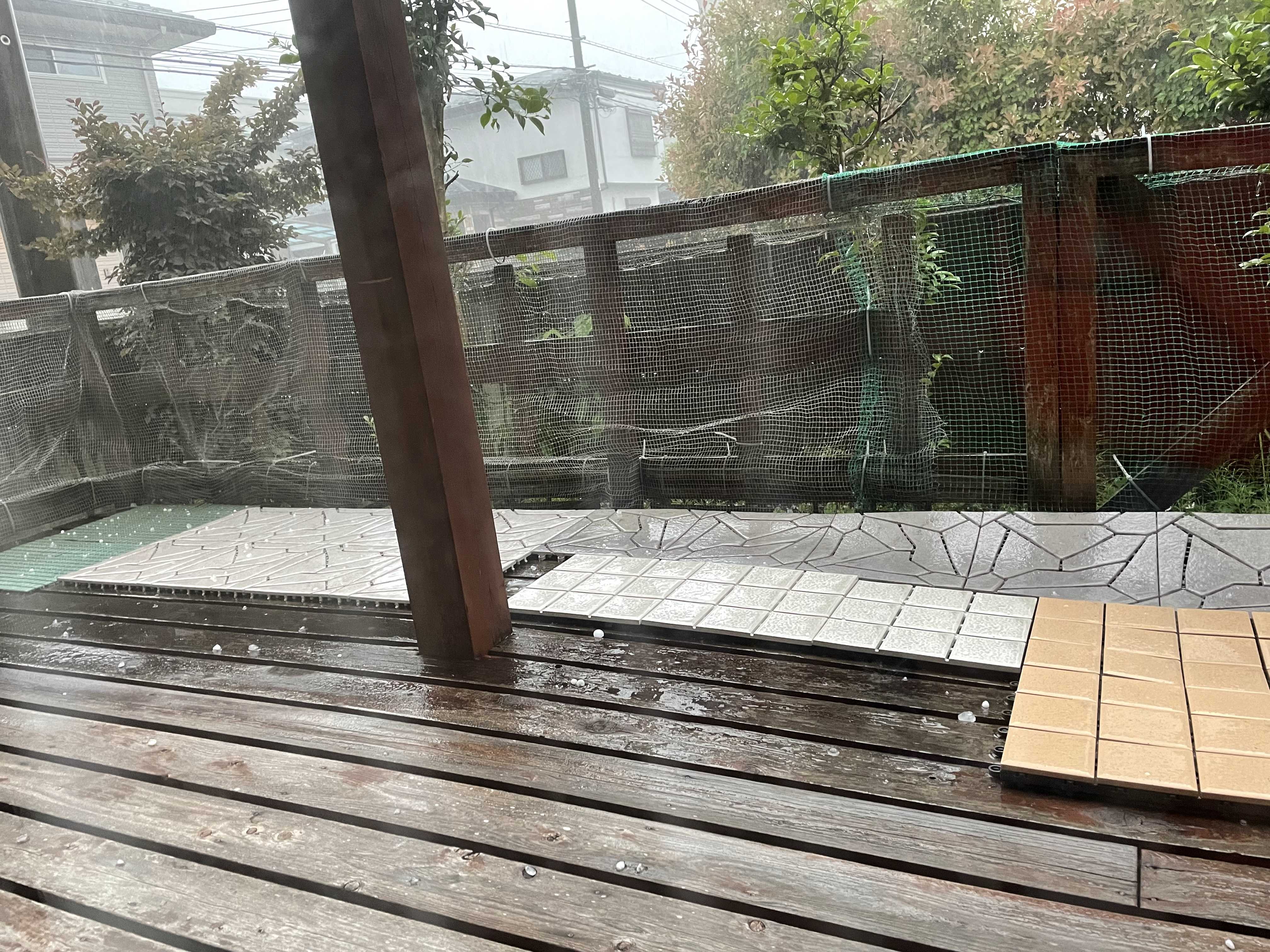 一昨日のお天気の急変、怖かったです。まず、あんなに暗い空になったのを見たの、初めてだったと思います。真っ暗になって来て、雨が降り始めたと思ったら、屋根に当たるスゴイ音で、雨じゃないと気付きました。窓からベランダを見たら、氷のかたまりが落ちている。ウチの方は、たぶん直径1センチから1.5センチくらいと思いますが、もっと大きかったところもあったらしい。同じ市内でも、場所によって違ったみたいです。お友達のところは、カーポートに穴が開いたり、車の屋根がボコボコになったとか。カジューロの車は、ボコボコまではいかないものの、やはり少しへこんだり、フロントガラスも傷がついたりしました。翌日に、自転車に乗ろうとしたら、カラカラと何かがぶつかる音が。みたら、車輪に付けてた反射板が取れかけていました。わたしも、歯科に行って帰って来てしばらくしてからだったし、チョロジの帰ってくる時間より早かったので、良かったです。歩いてる時だったら、傘に穴が開いたり、怪我してとかもしれません。家の中にいても、ホントに音が怖かった〜(@_@)こんな大きなヒョウが、また、しばしば降るようなら、これからどうなっていくのか、心配。農家さんのお野菜や果物も、被害うけたのでは。うちの小さな花壇も、葉っぱが割れたり、咲き始めていた紫陽花も、お花が弾けてしまいました。折れてしまったミニバラ。コップにお水を入れて浮かべています。ホントにこれからの地球、大丈夫だろか。。。地球温暖化に、何か出来ないだろか。と思います。