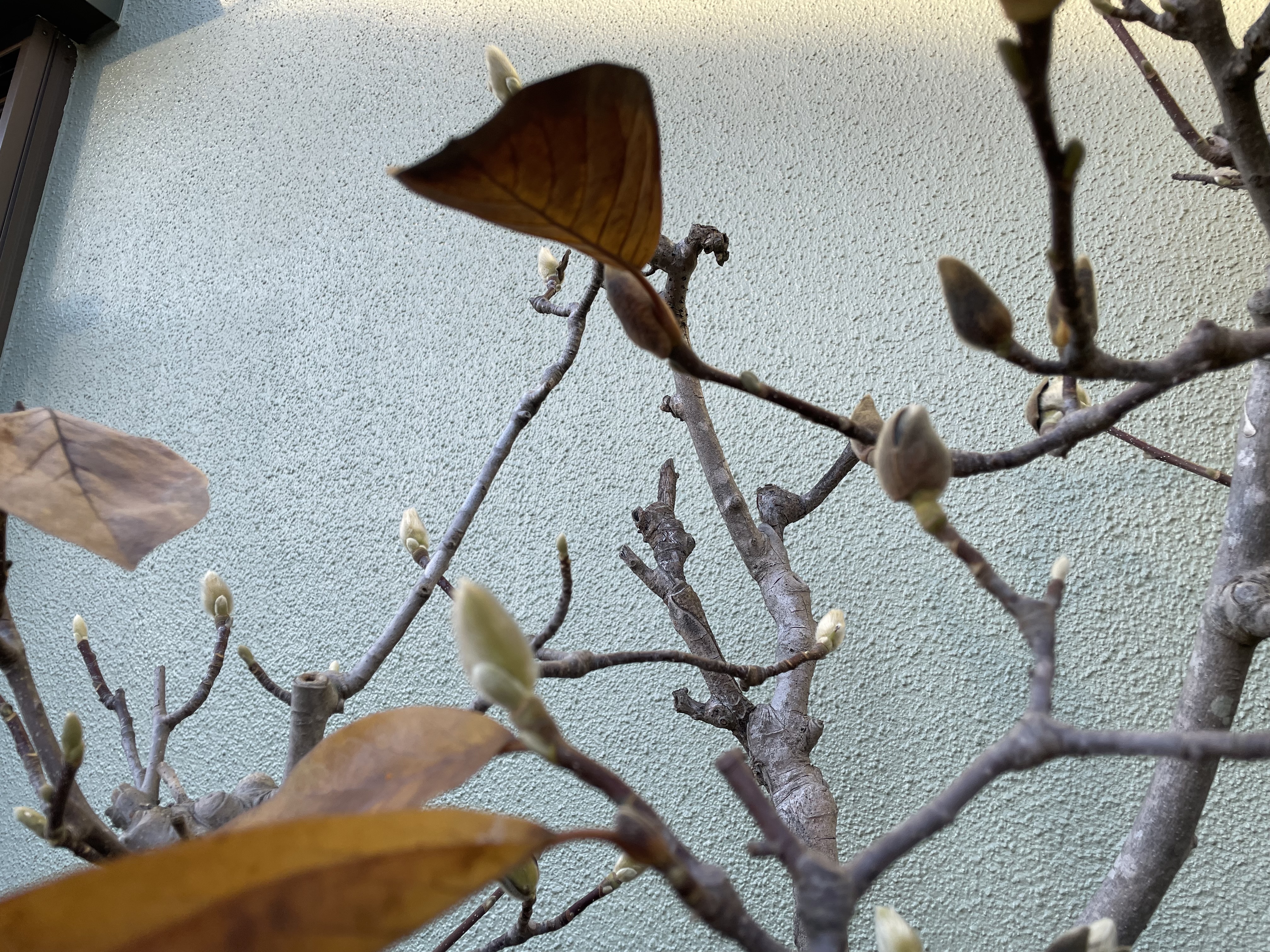 このところの寒暖差からの、昨日は午後から急に風が冷たく強くなっての冬本番。わたしは自治会の役員会があったので、チョロジはヘルパーさんをお願いして、お出かけしてもらっていました。午後になって、事務所からメール。昼食後に車で移動中、チョロジ、気分が悪くなり、事務所に戻って横になっているとのこと。熱はないので、そのまま休んでもらい、夕方、お送りしますとのこと。先月も最初の連休の3日目に、同じように気分悪くなったことを思い出した。このところの天候には、わたしもやられていて、調子良くないし、チョロジはもともと、体温調節が上手ではない。夜になって熱上がるかもなぁと思っていましたが、夕方、予定よりも早めに送られて帰宅。聞けば、嘔吐してしまったので、早めに送らせていただきました、と。最近は、気持ち悪くなっても、吐くことはまれになっていたので、今回は胃腸にもきてしまったか。その夜、熱は36.8度。風邪薬と胃腸薬を飲ませて、よく眠れていた様子。今朝は、37.0度。普段、体温低めのチョロジなので、ちと高めの微熱かな。ということで、本日はチョロジはお仕事お休みしました。1日、うどん生活になると思うので、後でうどん買いに行きまーす。(調子を崩すと、うどんしか食べないチョロジ。ご飯苦手なので、おかゆとかおじやとかは食べないのです(^^;;)玄関先の白蓮ちゃん、いよいよ蕾のまわりの殻?が剥がれて咲きそうなところで、停止しています。また、暖かい日が来たら、急に開くのかもね。がんばれ!