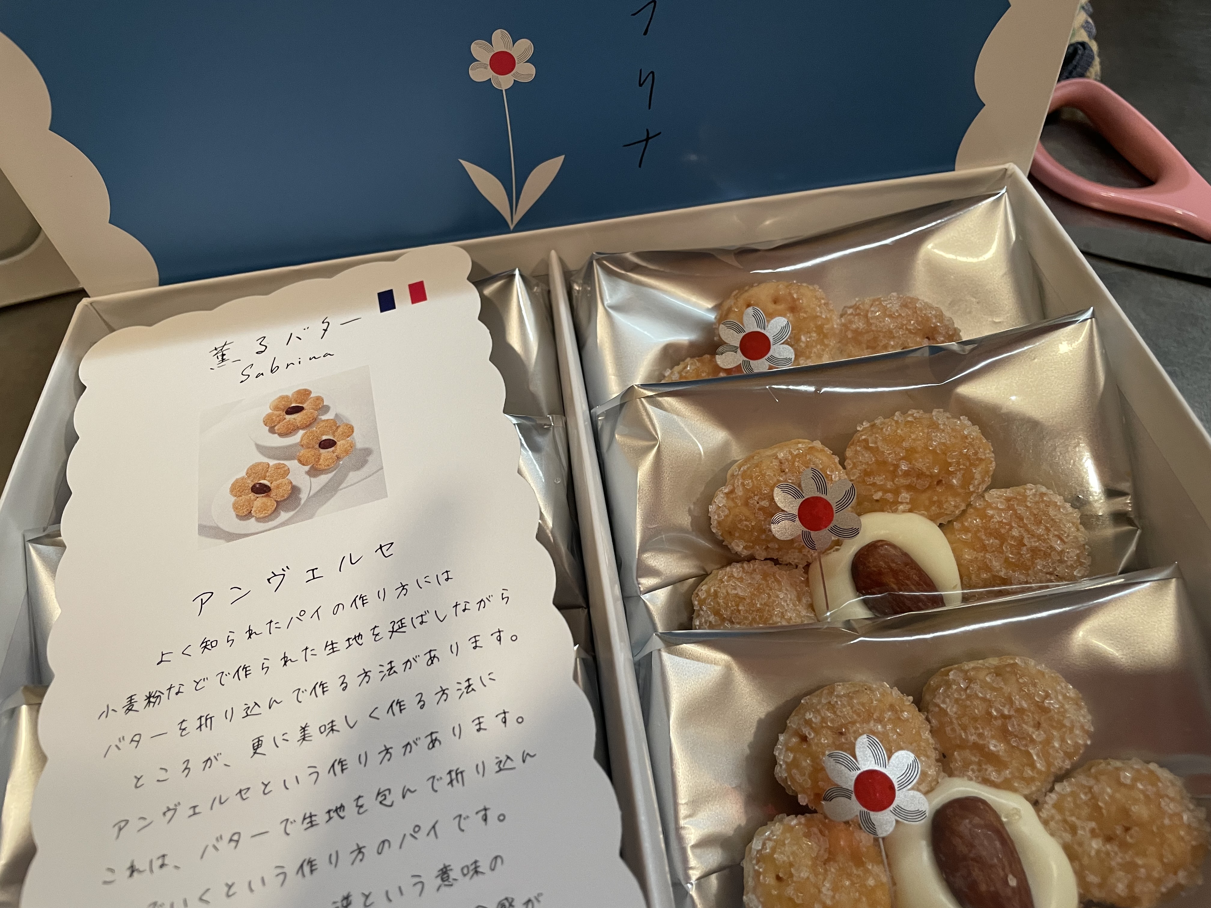 今朝は、昨日より少し気温が上がって、楽な気がしたのもつかの間。外に出たら、風が強くて体感温度は昨日と変わらないかも。こんな日は、用事がなければ外出しないに限る。わんこ散歩は行くけどね。あとで、近くのドラッグストアには行きたいけど、徒歩で行くつもりです。横風にあおられると、自転車倒れそうで怖いのよ。おばちゃん、転んだら骨折の危険もあるしね。今日は、まだ出来ていない、夏物の服をしまって、扇風機をキレイにして、片付ける。あと、まだ、書かねばならない書類もあったり、年賀状もまだ作ってないし。常に、やらねばならないことが山積みなのは、なんでだろうか?先月、大切なお友達がプレゼントしてくれたお菓子。ビジュアルがまず、とてつもなく可愛い。そして、パイ生地は、小麦粉でバターを包んで作るのではなくて、バターで小麦粉を包んで作るという、手間のかかったものらしい。甘さもちょうど良くて、めちゃくちゃ美味しいの。でも、いっぺんに食べたらもったいなくて、ちょびちょび頂いています。幸せ( ^ω^ )Sちゃん、ありがとうね(*^^*)