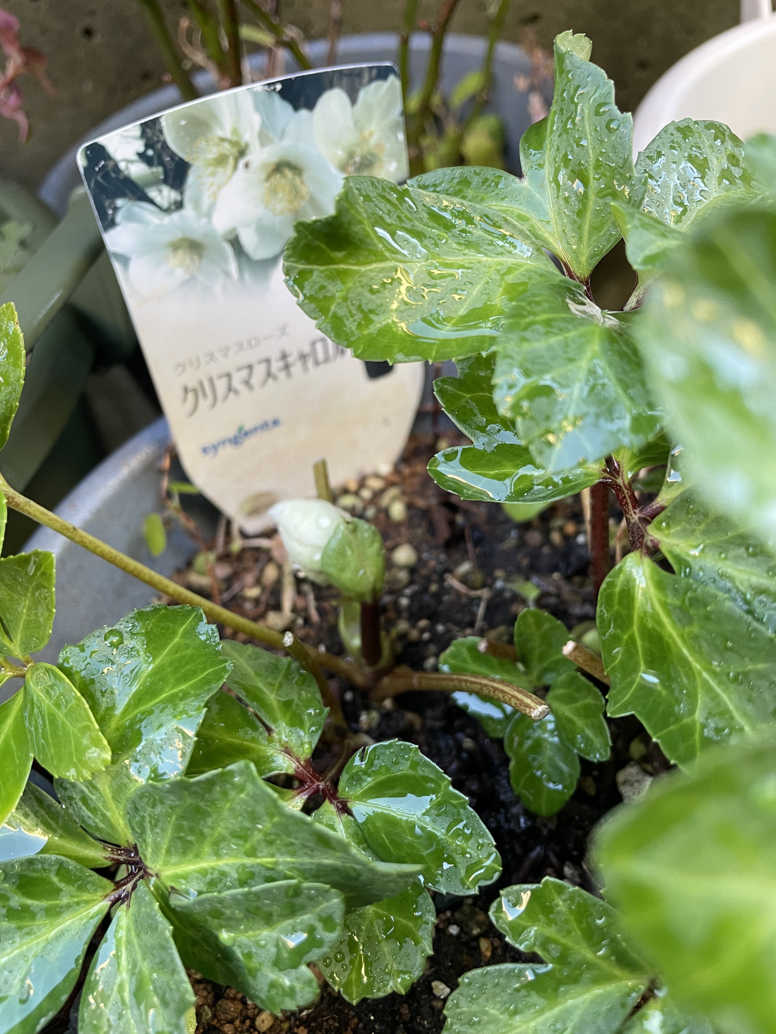 昨日はバタバタして、買い物にいけなかったので、今日はベルクにローストチキン買いに行きました。チキン好きなのですが、大きなローストチキン、食べ切れないので、いつも息子ふたりの分時間買いません。今年もやはり、同じく。ペロッと完食したふたり。ケーキは、ヤマザキのロールケーキに生クリームをしぼって、いちごを飾り付けた、なんちゃってショートケーキです。夕食後には、ちょうど良い大きさ。今年初のいちごが美味しかったです。お写真撮る前に、食べてしまった〜(^_^;)年々、クリスマスもお正月も、我が家は縮小気味です。もう、小さい子どもがいるわけじゃないから、イベント感は薄くなってしまいました。サンタさんのプレゼントを、子ども達がいない時にラッピングして、当日まで隠しておくのが大変だった頃が懐かしいですね。。。(*´꒳`*)クリスマスと言えば。。。玄関先にあるクリスマスローズが、ひとつだけ蕾が出来ていました。肥料をあげていないからか、なかなか蕾が出来なくて、この小さい蕾は貴重です。無事に開いてくれよ。。。*\(^o^)/*