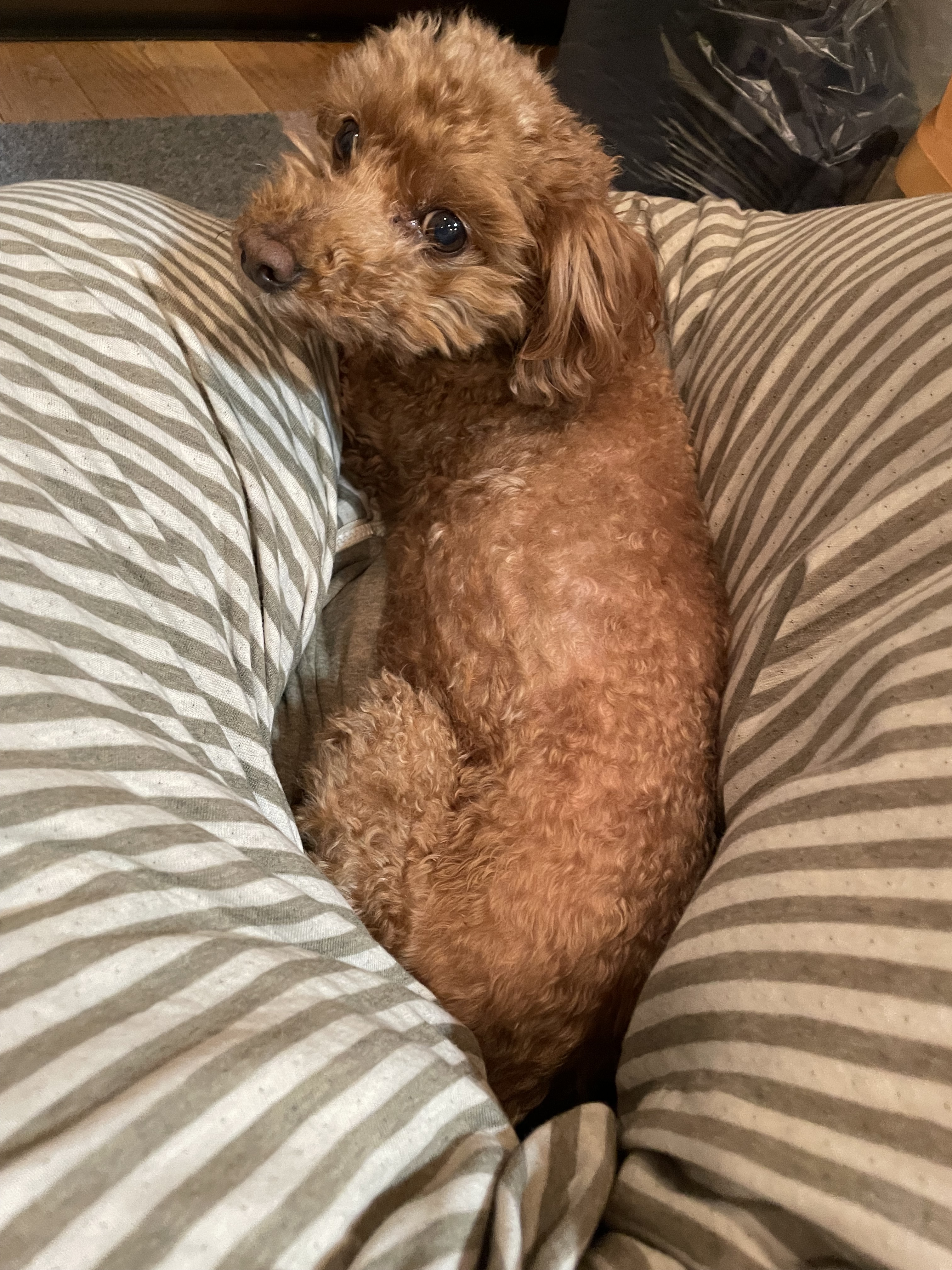 もうすぐ、今年も終わり。1年のなんと速いことよ。そして、今朝もいつもと変わらずに、ルウとコナツのお散歩に行きました。コナツ、このところ、夕方のお散歩でしか、うん○が出なかったのですが、今朝はなんと3つも良いうん○が出たのです。コナツえらいね〜と言いながら、それ用のビニール袋で取ったのです。そして、水もかけて、歩き始めようとした時に。。。え?と気付いたのでした。私の両手にコナツのうん○が付いているじゃないですか(o_o)なんで〜?こんなこと、初めて〜(・_・;ちゃんと袋に入れたつもりが、ちゃんと入っていなかったのでしょうか。よくみたら、お散歩バッグにもチョンチョンと付いてる!お散歩バッグに入ってるウエットティッシュを取ろうにも一苦労。ひゃー、これは大変。わたしのダウンジャケットにも付いてるかも。。。とりあえず、見てわかるところはウエットティッシュで拭き取り、ササッとお散歩をすませて帰宅。今日は、シーツや枕カバーも洗いたくて、朝から洗濯機2回も回してたんですが、ついに3回目も。ダウンジャケットとお散歩バッグも洗いました。いやはや。。。ある意味、朝からついてたよね。運が良かったってことで。。。はははっ(^_-)でも、お散歩してる間に、チョロジに庭の枯葉(だいぶ前に、かなり伸びていた雑草を抜いて、そのまま置いていたもの)をゴミ袋に詰めてもらうのを頼んでおいたら、綺麗に片付けてくれて、とても助かりました。うんうん、だから、今日はキレイになって良かったよ〜。お散歩バッグも、ひっくり返したら、中がめっちゃ汚れていたしね。そろそろ、洗いなさいってことだったんだね〜(^_^;)「ほら、あたしのおかげでいろいろキレイになったでしょ」うーん、まあ、そっかな(^^;;