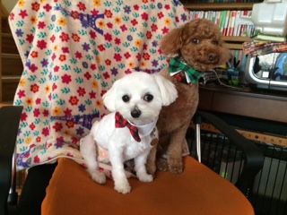 今日はクリスマスキャンペーンで、アロマのお風呂や歯磨き、肉球ケア、お好きなシャンプーのプラスセットに赤と緑のリボンがつくとのこと。