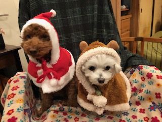 ルウのはサンタ風、コナツのはトナカイ風です。