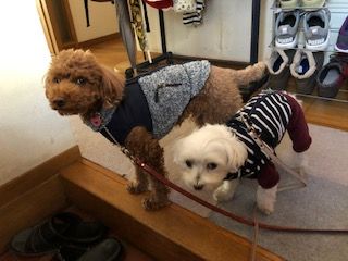 お散歩も、コナツがブルブル震えてしまうので、お洋服を。