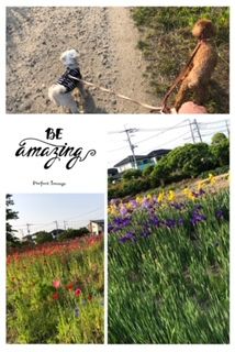 さて、昨日は夏のような暑さでしたが、今日は爽やかな晴れ。お散歩びよりだったので、夕方のお散歩は川沿いの遊歩道を1時間強、歩きました。