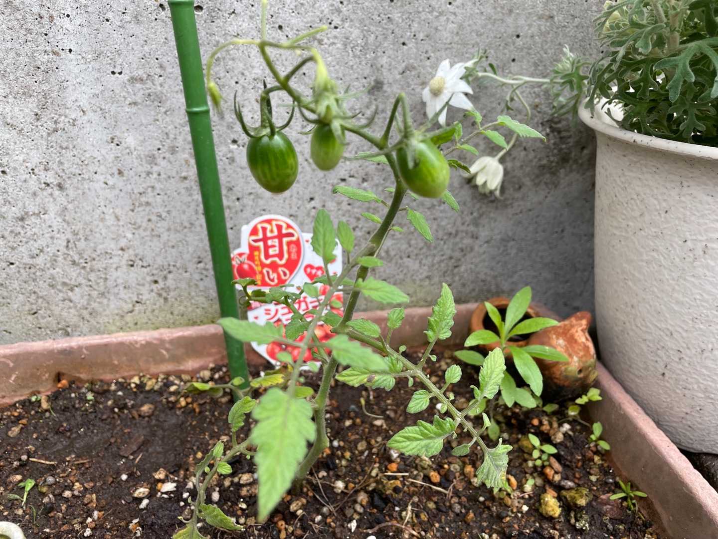 先日、苗を植えたミニトマトも、早くも実がなっています。