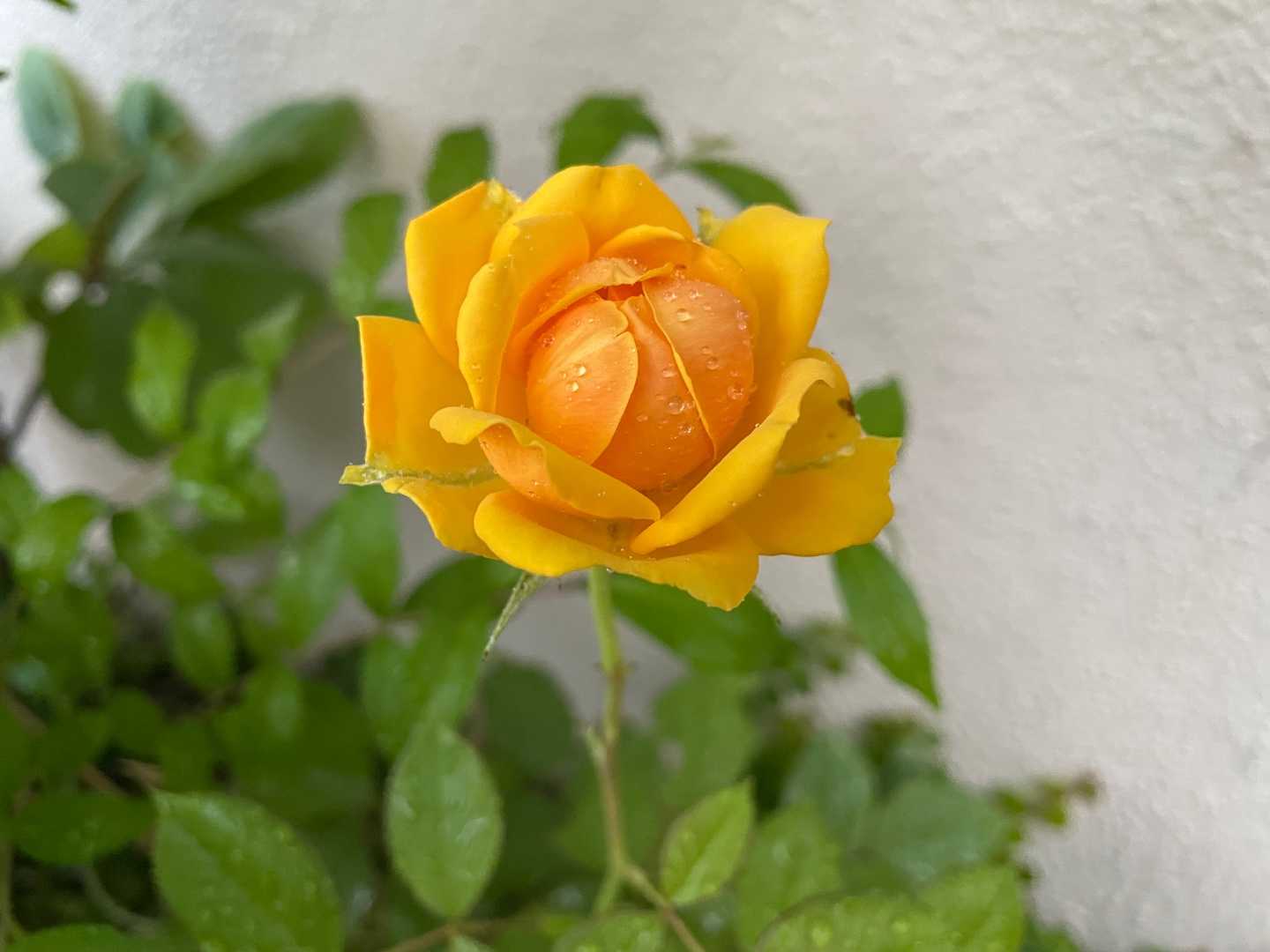 今朝見たら、いきなりミニ薔薇が咲いていました。大好きな黄色。凛々しいね。
