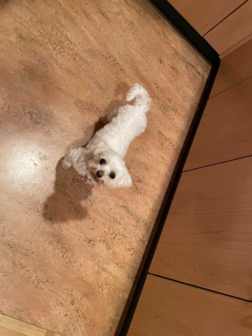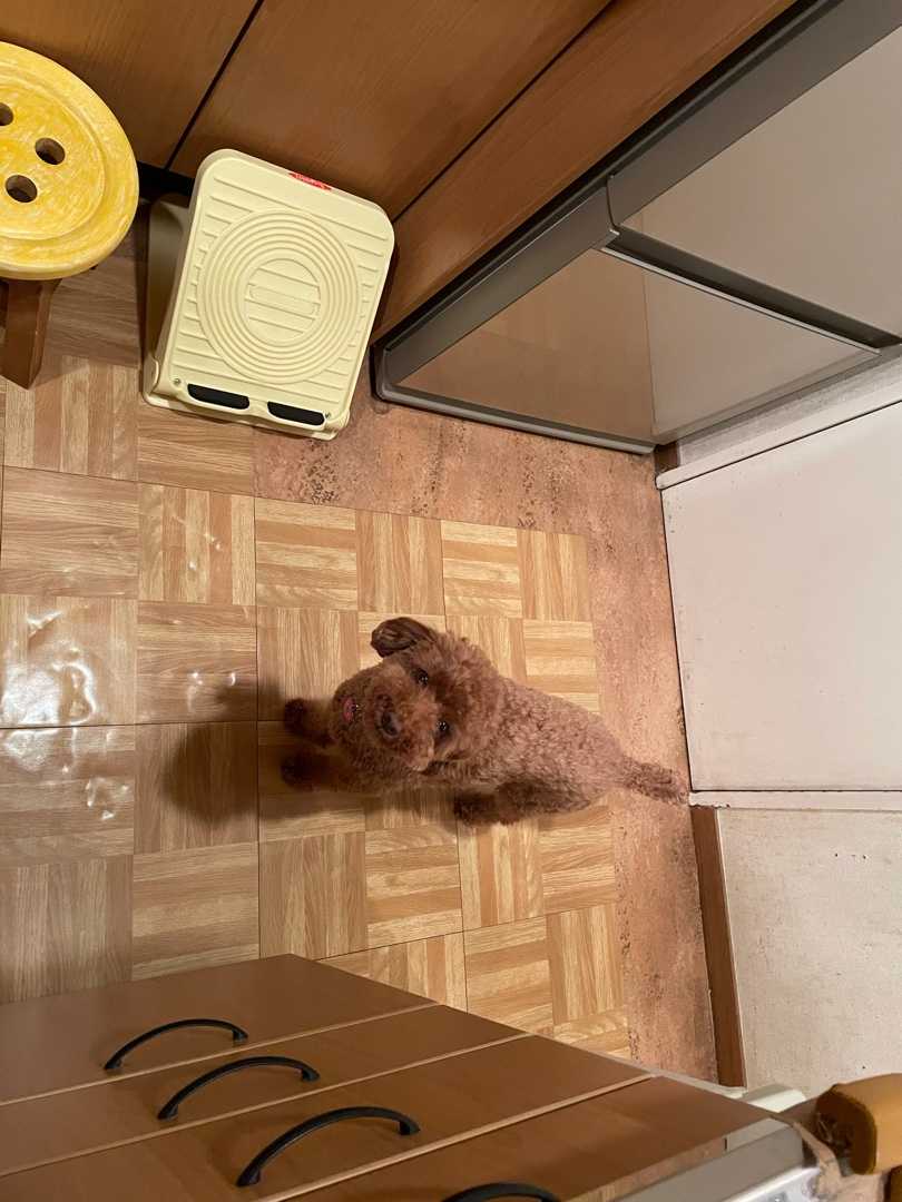 大きめのベッドで爆睡してるコナツ。コナツも、湿度の高いのは苦手みたいで、お散歩が大好きで行きたくて、もっともっととリードを引っ張って歩くも、結局、最後はゼーゼー、ハーハーして、抱っこして帰って来ます。