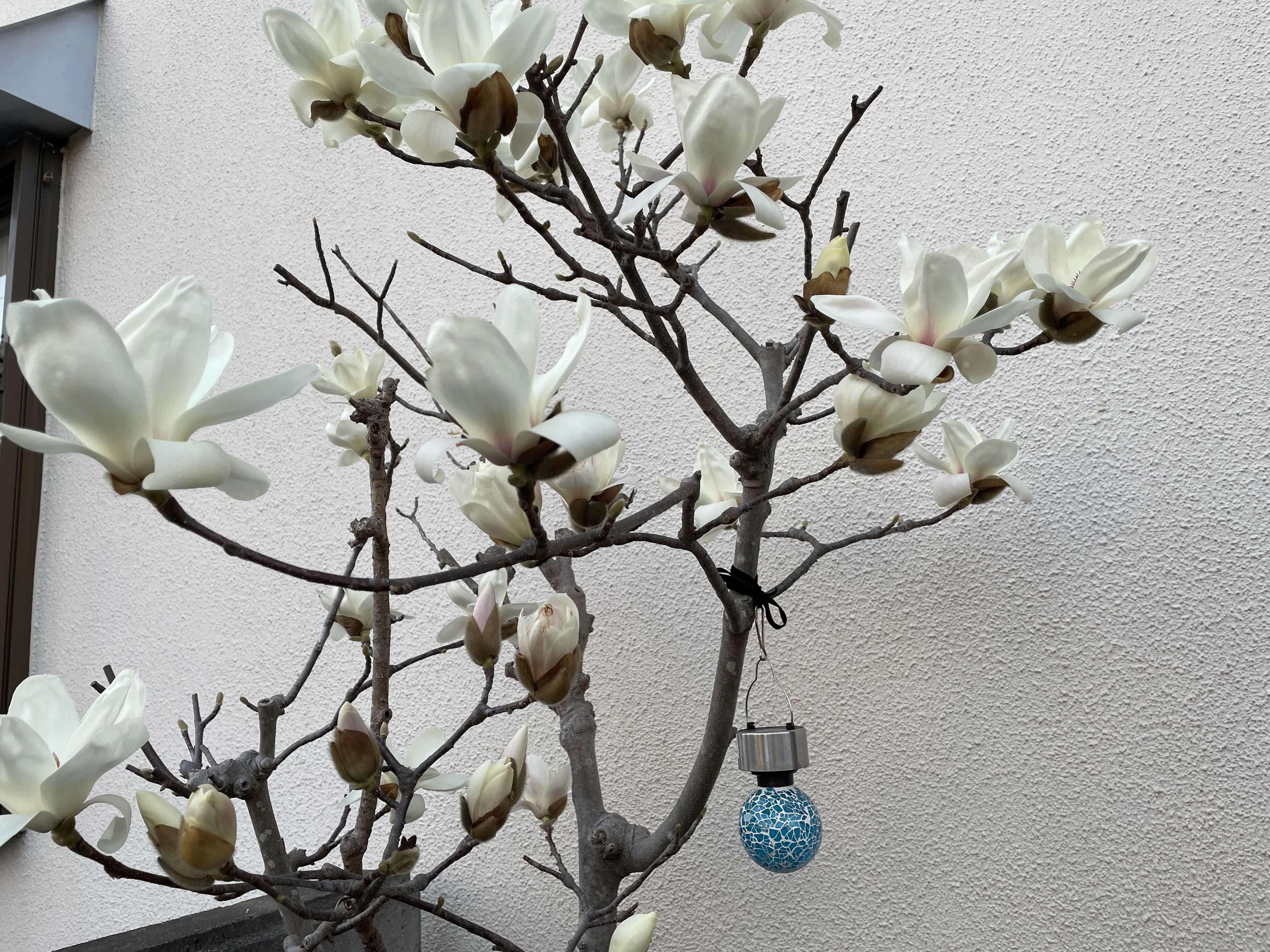 玄関先の白蓮も、いきなりの満開。