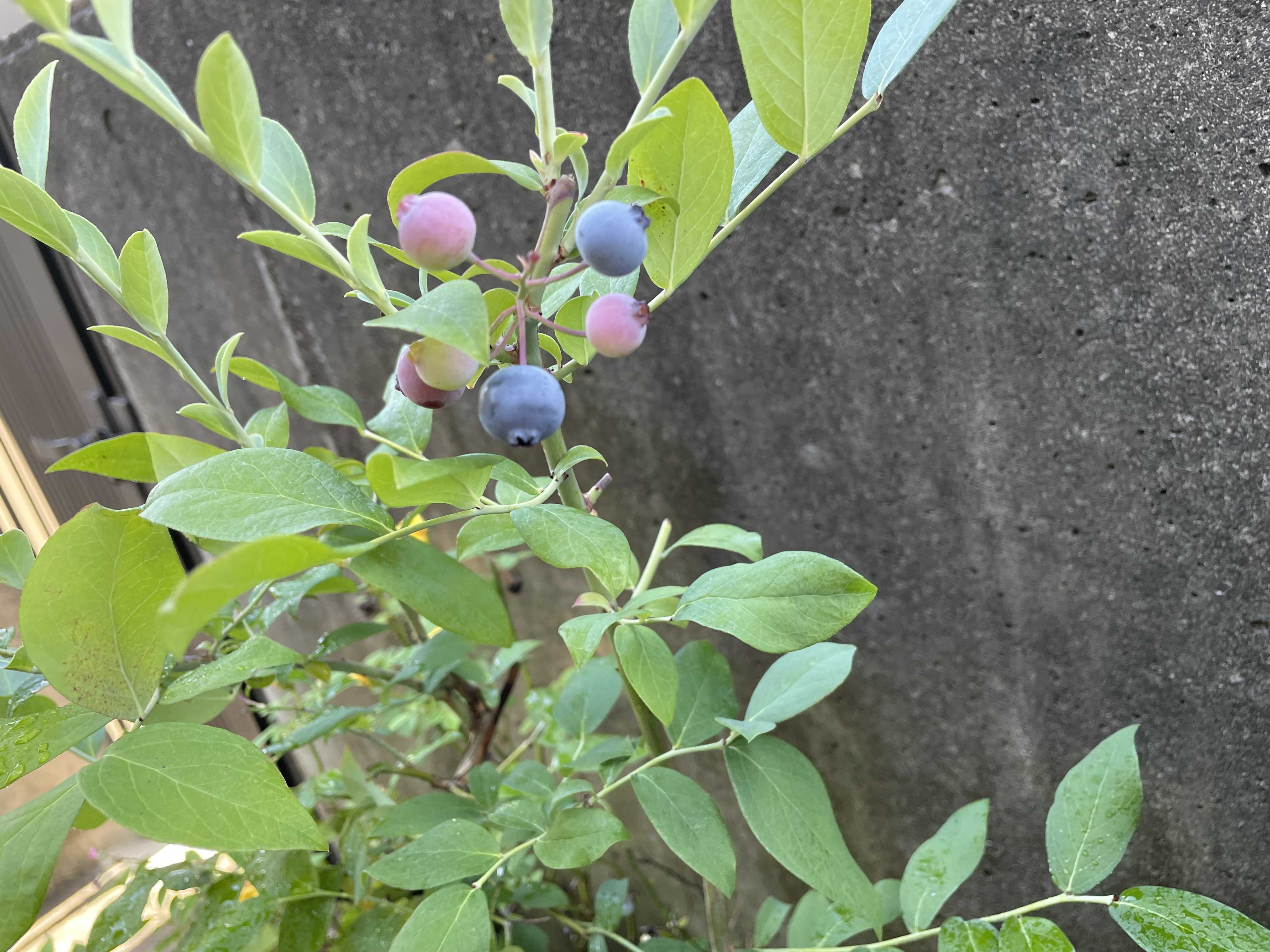今年はブルーベリーもたくさん実ってくれて、20粒ほど食べられました。昨年までは、5、6粒しかならなかったのです。大粒で、甘かったです。ブルーベリーの木、頑張ってくれてありがとう!