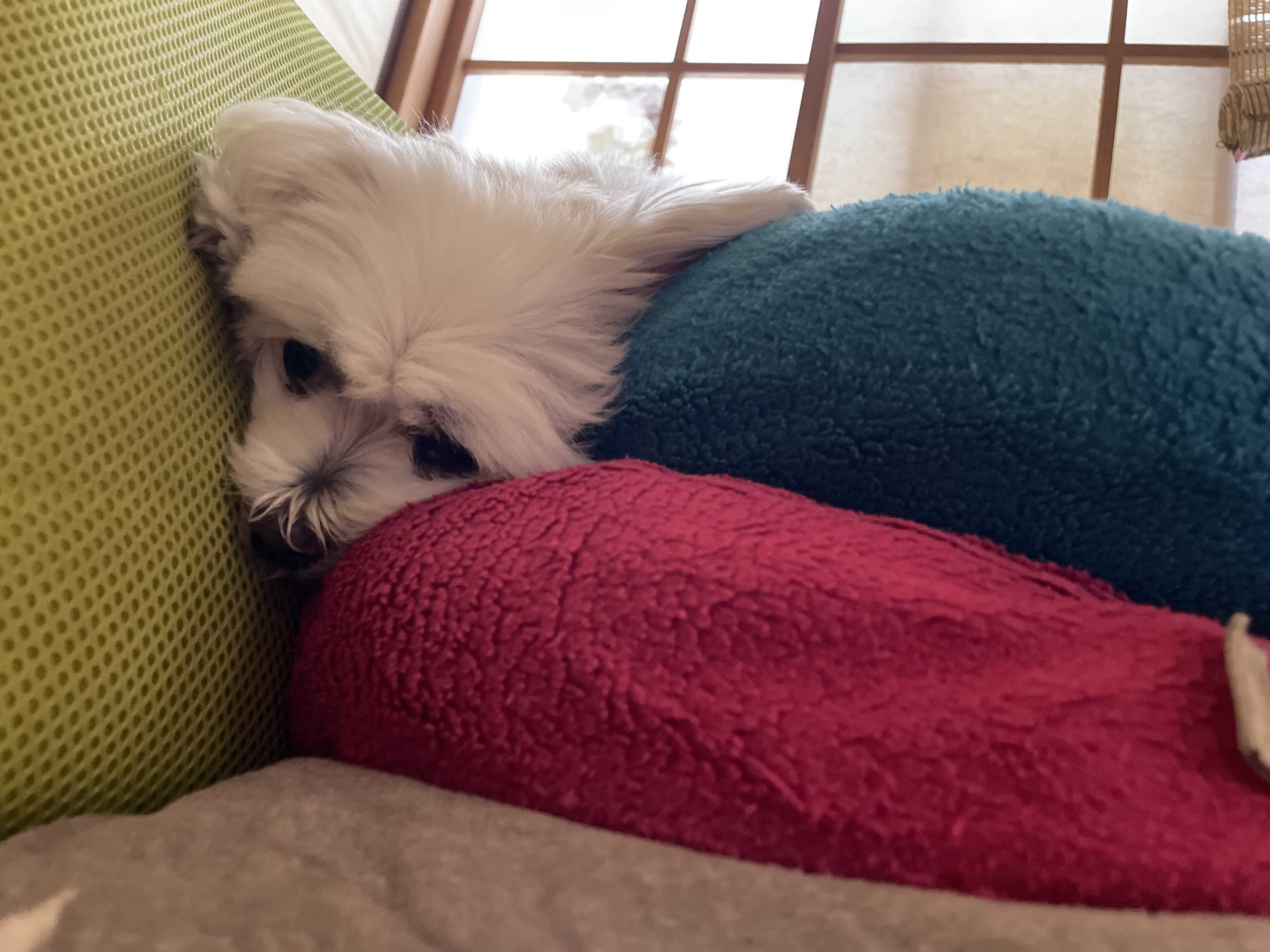 ソファーの凹みにハマってうとうとなルウ。