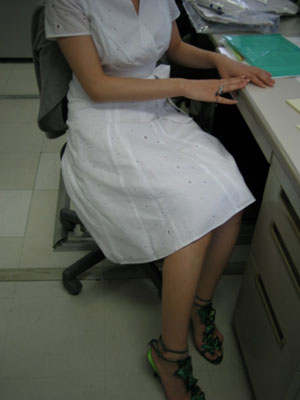 本日のスタッフKさんコットンレースカシュクールワンピース をかわいく着こなしています。人が着ているのを見ると欲しくなるのはなぜなのでしょうか??ちなみに彼女があわせていたのはグリーンのオシャレなサンダル。葉っぱかと思ったら蝶が飛んでいます。そして極めつけは先日販売した共同購入のバッグ経理担当者が「スタッフKと同じ名前で注文が入っているけど、まさか・・」実は彼女、共同購入でHPから注文しております。。。しかも、初めてのご注文とのことで自ら前払いをしておりました。さすが?ですね。。