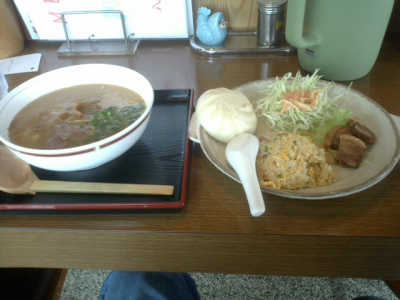 お店の場所なんですが、倉敷市平田 ディオ倉敷店の隣にあります。今回頼んだのはお昼のランチサービス日替わりで ラーメンのほかに 本日は 肉まん チャーハン 野菜 角煮がついていました。チャーハンは ごま油の風味が効いていて美味しかったです。八十八家の基本のラーメンは こってり豚骨醤油味とあっさり鶏がらのはちはちラーメンの2種類。今回は こってり味だったのですが、麺とスープとの相性が抜群でたいへんおいしくいただきました。ただし麺をすべて食べ終わった後 スープのみを飲んでいると 多少 塩辛く感じたので スープはできるだけ 麺があるうちに飲むといいとおもいました。