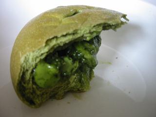 久々の日記更新になってしまいましたー( -.-)ノ-=≡≡≡卍卍(シュ)毎日毎日行きたいのを我慢しているパン屋さん フールドゥアッシュへ27日に行ってきましたーここに行くと、どれもこれも食べたくって選ぶのにすっごく時間がかかってしまいます・・・。ちゃっちゃと選ばないと他のお客さんお店に迷惑なのにぃ・・・。お店の雰囲気もオープンキッチンになっていて作っている現場が間近にみれて楽しいし、おしゃれな内装だし、シェフさん(でいいのかな?)、店員さんもとっても優しくて素敵です~。今回は6種類買ってきました~!!!名前は覚えきれず適当です・・・。どれも写真を撮るまで待てず少しずつ食べてしまいました・・・<'06リュスティック 抹茶とホワイトチョコ>抹茶とwチョコってところに惹かれて珍しく即決!!この黄金コンビ、お菓子ではよく見かけるけどパンではちょっと珍しい???生地は気泡が沢山で柔らかもちもちでほろ苦抹茶の味がしっかりしていてホワイトチョコの甘さとマッチ!あああ~!!!!やっぱりアッシュはおいしい!!!!<ドゥーブルフロマージュ>2種類のチーズのパンってことでしょうか???なんか青カビチックなのが出てきたので、ゴルゴンゾーラと何かのチーズなのかな???もう、噛んだ瞬間からチーズ!!いえ、噛む前から香りでノックアウトチーズ!チーズ!チーズ!でチーズ好きには溜まりませんー!!!<マンゴーフロマージュ>これは見つけるたびに買ってしまいます!ブログでも1,2を争うほどよく見かけますよねー説明するまでも無いかもですが、マンゴー入りの生地(生マンゴーになったんでしょうか??)にクリームチーズ&生マンゴーがトッピングされてます!!!生地の中のマンゴー量が多くってジューシー&トロピカル!!!大大大~すき!!<リンゴとシナモンとホワイトチョコのパン>これ葉っぱの様なかわいい形をしてたんです(^^;)好きな物ばっかり入ってたので、チョイス!!!シナモンがきいた生地は、むぎゅむぎゅと噛みごたえがあっておいしー!!リンゴも結構入っていてアクセントのWチョコもイイカンジです!!<いちじくのクリームパン>これ切ったときにつぶれちゃったので画像がありませんカップからぷくーっとふくれて様な形の可愛いパン!!焼きたてを買ったので歩きながら少し食べちゃいました!!!クリームがっ!!クリームがおいしいんですよ!あなたっっ!!!クレームパティシエールのなかにいちじくのつぶつぶ感があってふんわりやさしい生地と食べると最高!!!<アンガディナ>お菓子もおいしいとのことで焼き菓子も買ってみました!これ~!!!すっごくすっごく衝撃を受けるほど感動しました!!!!めちゃくちゃおいしい!!!!!!!!!さくさくの生地はバターがたくさん使われてるんだろうなと思うのに、軽くてしつこくなくてどんどん食べ進んでしまいます。なかのキャラメル部分はベタベタ歯につくのかと思いきや、そんなことはなくてとろり濃厚なのにすっきりしていて、表しようのないおいしさなんです!!!!次はお菓子もいっぱい買いたいなぁ・・・。(お金があれば)アッシュのパンをたべると、同じぐらい金額を払って近所でパンを買うのがあほらしくなってしまいます。・・・でも、つい暇があると足がパン屋に行ってしまう・・・(T.T)またアッシュにパンを買いに行きたくてウズウズしてしまいます
