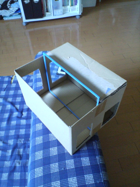 先日、見てきたトランスフォーマー・ダークサイドムーンは3Dで鑑賞したのですが、非常に良かった。ストーリーが陳腐でくだらねーとかいうのは無しにしてもだ。うちの子もすっかりトランスフォームにはまっておりまして。誕生日には4体もフィギュアが増えた。40センチオーバーのオプティマスを初め、バンブルビー、アイアンハイド、サイドスワイプ、メガトロン、ショックウェーブが増えた。ちなみにわたしのお気に入りはショックウェーブ。一つ目がザクみたいだから。閑話休題トランストランス、すっかり私の頭脳はトランスに占領されてしまっている。トランスフォーマーじゃなくて。催眠のほうですわ。んで、それを仙道と融合させるために日々研究を重ね、ついに究極のマシンを完成させました。それがこちら。じゃじゃん。体外離脱装置一号です。強制的に体外離脱の感覚を脳に記憶させ、瞑想中に意識分離を起こしやすくするという最終兵器。どこらへんが最終兵器やねんと言う突込みが聞こえて来そうなので、少し説明をしよう。使い方はいたって簡単。箱の片側に空いた二つの穴に両手を入れるだけ。するとどうなるか。例えば写真の状態では右手が見えずに左手と鏡に映った左手が見えている。この状態で右手を一切動かさずに右手だけを動かすとどうなるか。あ~ら不思議。右手が動いていないはずなのに鏡の像を見た脳が右手が動いていると勘違いする。すると動かしていないはずの右手が動いてるかのように感じるのだ。または逆でも良い。右手を動かしつつ、鏡に映った像を見ると全く手は動いていない。すると右手の感覚が別のところにあると感じてしまう。まるで体外離脱!!これ、テレビを見ていてヒントを得ました。幻肢と言う現象がありまして。事故等で手足を失った方が、無いはずの腕や足の感覚を感じると言う現象。それを修正するためにこの箱が使われると言う。脳は結構てきとーな臓器でして。簡単にだまされる。その能力(?)を利用して体外離脱を起こしやすくする訓練用に考えました。いや、実際にやってみると非常に変な気分になる。手が動いていないのに別の場所にあるのが感じられるのだ。これで練習しておいてから、催眠誘導音声や特殊な音楽を聴くと本当に体外離脱を起こしそうになる。あとは練習あるのみ。暇な人はお試しアレ~。