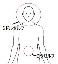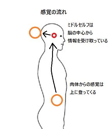 台風のおかげで思いがけずまとまった休みが取れました。忘れないうちに重要な修行方法を書いておきます。物理世界と異世界の違いについてヨガでも仙道でも瞑想を行うためには脳の中心に意識を置いて行えとあります。前のブログにも書きましたが、チャクラと呼ばれる部分に意識を集中したり、そこにエネルギーを集めたりすることで意識の変革を促すことを目的としているのです。でもこれって本当に正しいのでしょうか。私は実際に気を集めて練りこみ、それが別のエネルギーへと変換される体験をしています。催眠における変性意識が肉体へ作用を行う経験もあります。何百年もの間に、修行者が得た経験から仮説を立て、それに沿って修行方法を組み立てているのがヨガと仙道ですが、これらには大きな欠点があります。理論は仮説にしか過ぎず、実際にその修行を行っても、狙った結果が出ないことの方が多いという現実です。もしもその仮説が正しければ、修行者の努力に応じて必ず結果が得られるはずなのですが、そうはなりません。ごく一部の才能にあふれた人間が、偶然にたどり着くことがある程度です。つまり、これらの仮説は事実を表してはいるのですが、全体から見ると枝の一部分でしかありません。なので経験に無い出来事が起こると応用が利かないので、それ以上先に進むことができなくなります。では仮説には何が足りないのでしょうか。それは意識の数とその位置、そして物理世界以外に広がる意識の性質についての考察が足りないためだと私は思います。意識の位置とはフナのおさらいになりますが、次の絵を見てください。これは人体を正面から見た二つの意識の位置です。ロウセルフはお腹、小腸に広がる神経にその意識中心があり、ミドルセルフは目と目の間の奥にあります。この二つの意識は脳の中心から少し下に下がった部分、トルコ鞍(あん)と呼ばれる骨のくぼみだと伝説では言われているようです。仙道やヨガの過去の修行者たちは、トルコ鞍の部分、脳下垂体に意識を集中して意識の変容を促そうとしました。その結果はどうなったでしょうか。たいていは何も起こらないか、ホルモンバランスが崩れてしまい、病気になったりしてしまったようです。内分泌器官を調節している脳下垂体に意識を集中すると、その部分の血流が増加します。潜在意識が行っているホルモン調整機能が狂わされてしまい、体調がおかしくなるのは当然ですよね。これは物理的な肉体の機能と、異次元にある意識の作用を混同しているから起こるミステイクです。では次の絵を見てみましょう。これは横から見た意識の位置です。ロウセルフは体内にありますが、ミドルセルフが体の外にあるのが分かりますね。つまり、”普段、自分だと思っている意識は肉体上には無く、体の外にある”んです。”そんなことあるわけないだろ。どう考えても体の中にあるし!”と思いますよね。私もそう思っていました。では実際に検証してみましょう。自分はどこにいる?まず、今の自分の意識がどこにあるか感じてみてください。普通なら目の奥ですよね。そのあたりに自分だと感じている意識があります。それは間違いありません。では目を閉じてみましょう。ただ目を閉じて自分の位置を感じてみてください。さっきよりもかなり前にあるような気がしませんか?では次にイヤホンで音楽を聴いてみましょう。目を閉じて音楽を聴いているとき、自分はどこにいるでしょうか。おそらく左右の耳をつないだ中心あたりに感じられるはずです。その状態で両耳を手でそっと抑えてみます。すると自分の位置が少し後ろに感じられます。以前にもお話ししましたが、意識というのは感覚によってその位置をとらえているだけなので、感覚器官の情報が無ければ簡単にずれてしまいます。これは意識だけでなく体感も同じです。自分という意識が体内に感じられるのは、ロウセルフから送られて来る感覚器官の情報が、ロウセルフとミドルセルフの接続が行われているトルコ鞍を通るため、あたかもそこに意識の中心があるように感じるからです。実はそこは単なる通路でしかなく、本体は体外(実際は少し体内にめり込んでいる)にあります。少しまとめます。意識(ミドルセルフ)は感覚(物理刺激)によって位置を感じているロウセルフからの感覚は、両方の意識が接続しているトルコ鞍を通っているなので、自分という意識は目と目の中心の奥、トルコ鞍付近にあると思ってしまう接続部分はかっちりと決まったものではないので、だいたいそのあたりにあると感じています。ミドルセルフの存在する世界ミドルセルフは送られて来る感覚刺激により肉体の一部だと感じていますが、本来は別のところにあり、物理刺激とは基本的に無縁な世界にいます。ロウセルフは肉体制御を行っているので、その世界は現実世界であり物理世界とも言えます。逆にハイセルフは肉体がありませんから、完全に精神的な働きのみで