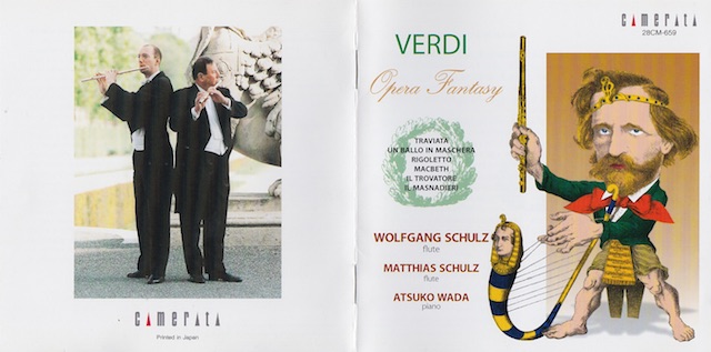 1月27日はジュゼッペ・ヴェルディ(伊:作曲家『椿姫』『アイーダ』)(87歳)の命日(1901年)ヴェルディ・オペラ・ファンタジー フルートによる華麗なヴェルディ・オペラの世界!ランパルが他界し、ニコレが現役を退いた現在、ニコレの後を継ぐドイツ系フルーティストの第一人者とたたえられるシュルツの第6弾は「ヴェルディ」です。2001年はヴェルディ没後100年を記念したイベントが全世界で繰り広げられました。ヴェルディといえば、数多くオペラの傑作を残していますが、今回は、そのオペラに魅せられた作曲家達が名旋律をテーマにして作曲した変奏曲(幻想曲)を一枚にまとめました。これらの作品はフルートの超絶技巧を駆使したものが多く、19世紀に人気を博し、20世紀には影を潜めていましたが、近年、モーツァルト学者として有名なオットー・ビーバ氏による「これからのクラシックの録音は、編曲作品を重要視すべき」という見解とともに注目されつつあります。 歌劇「椿姫」による自由なトランスクリプション(編曲:ジュリオ・ブリッチャルディ) ヴォルフガング・シュルツ(フルート)、和田篤子(ピアノ) 歌劇「仮面舞踏会」の主題による協奏的大幻想曲Op.5(2本のフルートとピアノのための)(編曲:ルイジ・ユーグ) ヴォルフガング・シュルツ(フルート)、マティアス・シュルツ(フルート)、和田篤子(ピアノ) 歌劇「リゴレット」による幻想曲(編曲:ジュリオ・ブリッチャルディ) 歌劇「マクベス」による華麗なる幻想曲Op.5(編曲:フランチェスコ・シルヴィ) 歌劇「トロヴァトーレ」によるディヴェルティメントOp.23(編曲:ガエタノ・カサレット) 歌劇「群盗」による幻想曲Op.27(編曲:ガエタノ・カサレット)」 ヴォルフガング・シュルツ(フルート)、和田篤子(ピアノ) 解説:J・A・フィリップス(訳:魚水憲)、井阪紘 CAMERATA(カメラータ・トウキョウ) 28CM-659 発売年月日:2002年1月25日 購入年月日:2002年7月18日(CDクラブ)Facebookページを開設しております、こちらも、時間あればご覧ください。Facebookページ/レコード・ライブラリー中南米音楽、クラシック、ジャズを中心とした幅広いジャンルのアルバムを紹介しています。