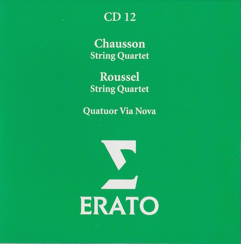 1月20日はエルネスト・ショーソン(仏:指揮者)の誕生日(1855年)エラート名演コレクション(50CD限定盤)[Disc 12]ショーソン/ルーセル/弦楽四重奏曲 ともに作曲者晩年の、しかも唯一の弦楽四重奏曲。テンションの高い旋律線が連綿と広がってゆくショーソンに対し、ルーセルは新古典主義的な形式の中で響とリズムの切れ味が魅力であり、仏近代の透明感、色彩感と伴せ際立った個性の違いが楽しめる。 ショーソン/弦楽四重奏曲ハ短調Op.35(1899)(ダンディ完成版) ルーセル/弦楽四重奏曲ニ長調Op.45(1931〜32) ヴィア・ノヴァ四重奏団 録音:1970年 ERATO(WARNER CLASSICS) 2564 64418-1-12 発売年月日:2013年9月17日 購入年月日:2013年9月30日(HMV)Facebookページを開設しております、こちらも、時間あればご覧ください。Facebookページ/レコード・ライブラリー中南米音楽、クラシック、ジャズを中心とした幅広いジャンルのアルバムを紹介しています。