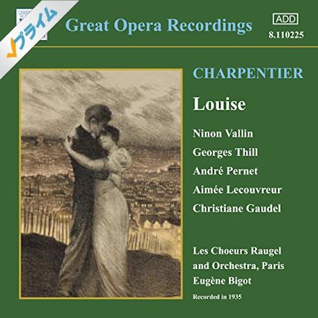 シャルパンティエ/歌劇「ルイーズ」(1900初演、パリ) (作曲家の協力と承認により、この録音のために特別に短縮された版による) https://www.amazon.co.jp/dp/B014K7YRAM/ http://ml.naxos.jp/work/37799 http://tower.jp/item/1015519 http://www.hmv.co.jp/en/Charpentier-Gustave-Louise-Short-Version Christiane Gaudel(ソプラノ) ニノン・ヴァラン(ソプラノ) Aimee Lecouvreur(メゾ・ソプラノ) ジョルジュ・ティル(テノール) Andre Pernet(バス・バリトン) Paris Les Choeurs Raugel ウジェーヌ・ビゴー指揮/Paris Les Orchestra Raugel