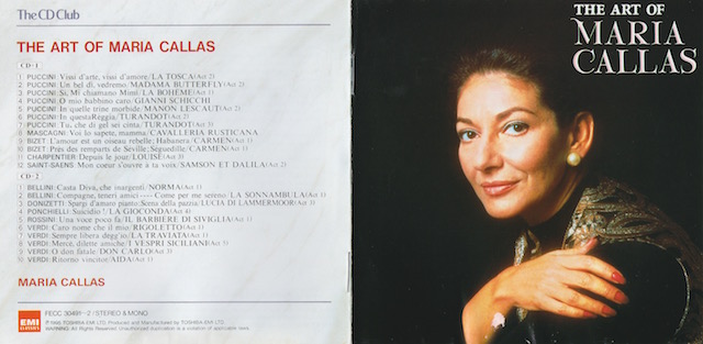 3月6日はヴェルディのオペラ『椿姫』が初演(1853年) 『椿姫』(つばきひめ)は、ジュゼッペ・ヴェルディが1853年に発表したオペラである。原題は『堕落した女(直訳は「道を踏み外した女」)』を意味するLa traviata(ラ・トラヴィアータ)。日本では原作小説『椿姫』と同じ「椿姫」(La Dame aux camelias(椿の花の貴婦人)の意訳)のタイトルで上演されることが多い。初演は1853年3月6日、ヴェネツィアのフェニーチェ劇場で行われた。 歌劇「椿姫」(1853初演、ヴェネツィア)-花より花へ(第1幕、ヴィオレッタ)歌に生き、恋に生き/マリア・カラス:オペラ・アリア名唱集(2CD) 徹底してオペラのヒロインになりきるマリア・カラスの魅力[Disc 2] ベルリーニ/歌劇「ノルマ」(1831初演、ミラノ)-清らかな女神よ(第1幕第1場、ノルマ) 録音:1960年9月5〜12日、Scala, Milano ベルリーニ/歌劇「夢遊病の女」(1831初演、ミラノ)-愛する仲間の方々・・・気もはればれと(第1幕第1場、アミーナ) 録音:1955年6月、Scala, Milano ドニゼッティー/歌劇「ランメルモールのルチア」(1835初演、ナポリ)-苦い涙をそそげ(狂乱の場)(第3幕第2場、ルチア) 録音:1959年3月、Kingsway Hall, London ポンキェルリ/歌劇「ジョコンダ」(1876初演、ミラノ)-自殺!(第4幕、ジョコンダ) 録音:1959年9月4〜11日、Milano ロッシーニ/歌劇「セビリャの理髪師」(1816初演、ローマ)-今の歌声は(第1幕第7曲、ロジーナ) 録音:1954年9月20〜21日、Watford Town Hall, London ヴェルディ/歌劇「リゴレット」(1851初演、ヴェネツィア)-慕わしい人の名は(第1幕第2場、ジルダ) 録音:1955年9月3〜16日、Milano ヴェルディ/歌劇「椿姫」(1853初演、ヴェネツィア)-花より花へ(第1幕、ヴィオレッタ) 録音:1958年3月27日、Teatro National de San Calro, Lisbon ヴェルディ/歌劇「シチリア島の夕べの祈り」(1855初演、パリ)-ありがとう、愛する友よ(ボレロ)(第5幕、エレナ公女) 録音:1954年9月、Watford Town Hall, London ヴェルディ/歌劇「ドン・カルロ」(1884初演、ミラノ)-むごい運命よ(第3幕第1場、エボーリ公女) 録音:1964年4月、Salle Wagram, Pais ヴェルディ/歌劇「アイーダ」(1871初演、カイロ)-勝ちて帰れ(第1幕第1場、アイーダ) 録音:1964年2月、Salle Wagram, Pais マリア・カラス(ソプラノ) 録音:1853~1965年 解説:浅里公三、河合秀朋、歌詞対訳:鈴木松子、小林利之、高崎保男 EMI CLASSICS(東芝EMI) FECC-30492 購入年月日:1995年10月16日(CDクラブ) #Verdi #Callas #FECC30492