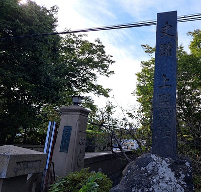 上田城址を観光してきました歴史好きな主人昼食を済ませ 最後に 上田城 を観光主人は 上田城があると思っていたようですが上田城址 でした・・・二の丸橋を通って 上田城跡公園へ。東虎口櫓門へ左側には南櫓 右側には北櫓が連結されています。東虎口櫓門の石垣には 巨大な 『真田石』があります。直径3mもの大きさがあります!下写真には全体を撮っていなくて・・・左端に半分だけ写っていますね東虎口櫓門・南櫓・北櫓の内部は見学できますが2人とも この旅行で毎日2万歩近くも歩き疲れていたため階段を上るのがキツく こちらの見学はしませんでした・・・さらに進むと真田神社上田城主の 真田氏・仙石氏・松平氏が祀られています参拝です。神社には直径2mほどの大きさにした真田幸村がかぶっていたものと同じような朱色の兜〈真田赤備え兜〉 が置かれています。さらに奥に進むと 西櫓 があります。西櫓 の内部は見学できないようです・・・西櫓の前には 真田井戸この井戸には 抜け穴があり敵に包囲されても 抜け穴から兵糧を運び入れたり城兵の出入りができたそうです。本丸跡は 広場になっているので そちらまでは行かずそろそろ帰路に・・・上田城跡公園から 上田駅までは 徒歩で10分ほどその通りには 真田三代・真田十勇士の案内板が設置されていました。 30℃は超えていませんでしたが しっかりと歩いて来たので 暑い・・・上田駅前にあるお店が ソフトクリームの旗が出していたので栗菓子 竹風堂 で ソフトクリームを。栗を使った和菓子屋さんなので栗あんソフトクリームカップまたは コーンから選べ 2人ともコーンで店内に 休憩イスがあったので そちらでいただきました。程よい甘さの栗のソフトクリーム!美味しかったです行きは新幹線を利用しましたが 帰りは飛行機羽田へ向かいます。ブログランキングに参加しています。よろしければ、クリックして応援をお願いします。にほんブログ村簡単料理ランキング
