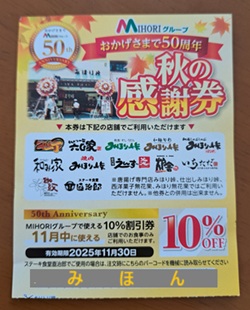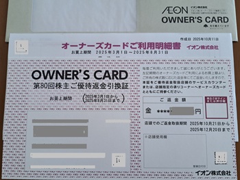 イオンオーナーズカードのキャッシュバックを引換えてきましたイオンの株を保有しているためオーナーズカードをイオングループで買物をする時に提示しています。保有株数に応じて半年ごとに買物合計金額の3~7%がキャッシュバックをしてもらえます我が家は 3%のキャッシュバック!オーナーズカードをイオンのアプリ iAEON に登録するとWAON ポイントで受け取ることもできますが我が家は今まで通り お店のカウンターで現金でキャッシュバックをしてもらっています。この半年は 他のスーパーなどを利用することも多かったためいつもよりキャッシュバックは少なかったかな?でも キャッシュバックしてもらえるのは 嬉しいですねイオンモール広島祇園でキャッシュバック&買物するついでに昼食を。イオンモール近くにある 定食屋さんへ。あおい食堂広島市安佐南区祇園3―7-23こちらのお店は 肉吸いや ホルモンの天ぷらなどのメニューがあります。ホルモンの天ぷらは 広島市西区福島町エリアが発祥だそうで今まで ホルモン天ぷらを 2人とも食べたことがありませんでした。今月10月末で この場所での営業は終了し広島駅近辺の 上大須賀町 へ移転されるとのこと!!そちらまで行く機会は なかなか無いでしょうから と食事をしてきました。2人とも No.1メニュー あおい定食 を注文。肉吸い・ホルモン天ぷら3種・ご飯・副菜・漬物の定食です。肉吸いは 豆腐も入っていてボリュームがあります! 私も あおい定食ですが肉吸いは ハーフサイズでホルモン3種は その日で異なるのかな?おまかせ3種になっていてこの日は センマイ・ビチ・大腸だったかな。トングとハサミが一緒に提供されそれを使って 自分で食べやすい大きさにカットします。テーブルに置かれている 酢醤油と韓国唐辛子を 小皿に入れたっぷりとホルモン天ぷらにつけていただきます。肉吸いをハーフにしましたがご飯の量が 思っていたよりも多めで かなり満腹!!初めての ホルモン天ぷらでしたが美味しくいただきましたブログランキングに参加しています。よろしければ、クリックして応援をお願いします。にほんブログ村簡単料理ランキング