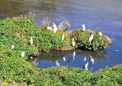 ベーカリー リュミエール でパンを購入です朝晩 肌寒くなってきたのでお昼前または 午後の暖かい時間帯に 川沿いを散歩しています。今日も お昼前に主人と散歩今日も 川には 白い鳥の群れがいました。白いので 目立ちますね。この頃 お昼は 麺類が多かったので散歩の途中に 久しぶりに ベーカリー リュミエールに寄り道。お昼用のパンを 買ってきました~主人とそれぞれ2個ずつ選び半分こしていただきます。さつまいもや黒ゴマたっぷりのパン や カレーパンハムやチーズがサンドされたパンや きのこなどがトッピングされたピザトースターで軽く温め直しコーヒーやスープと一緒にいただきましたが4種類とも 具材がある惣菜パンを選んでいたのでかなりボリューミーな昼食になりました!美味しくいただきましたブログランキングに参加しています。よろしければ、クリックして応援をお願いします。にほんブログ村簡単料理ランキング